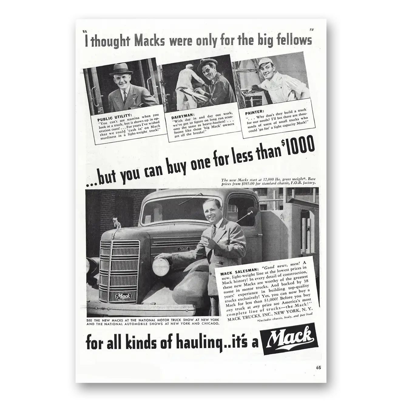 1939 Mack Trucks Print Ad | Thought Macks Were Only Big Fellows