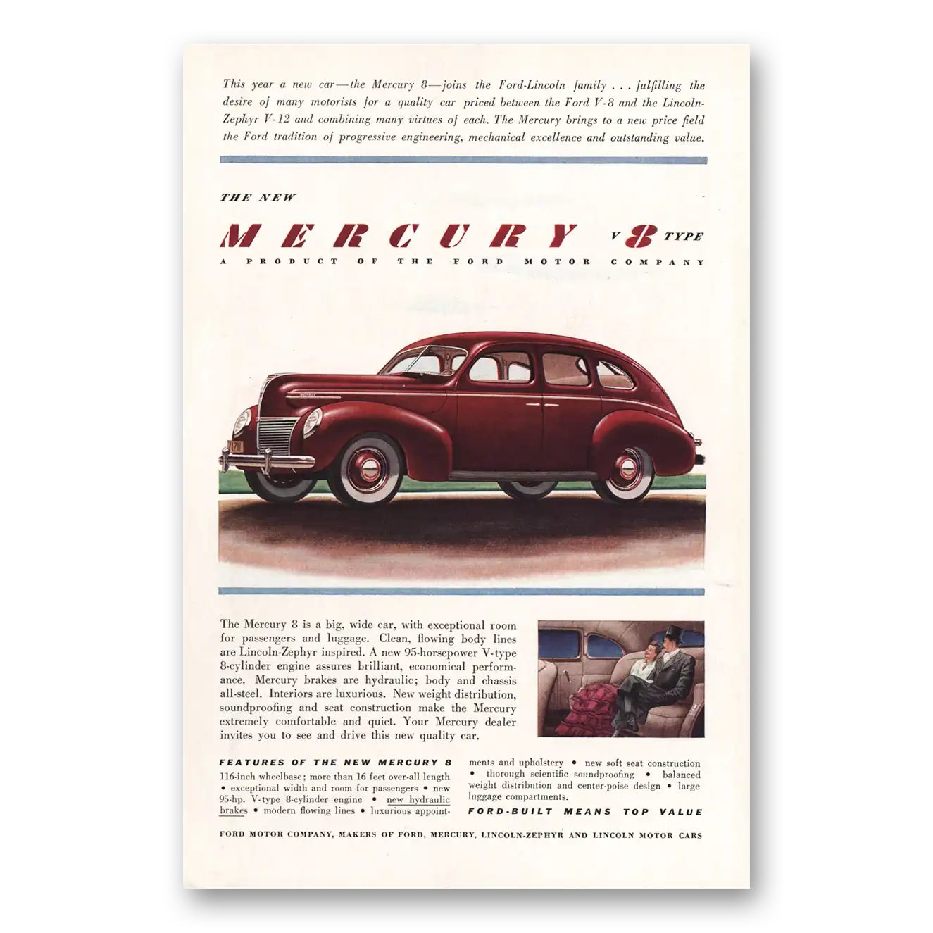 This is an original 1939 Mercury 8 print ad published by Mercury.