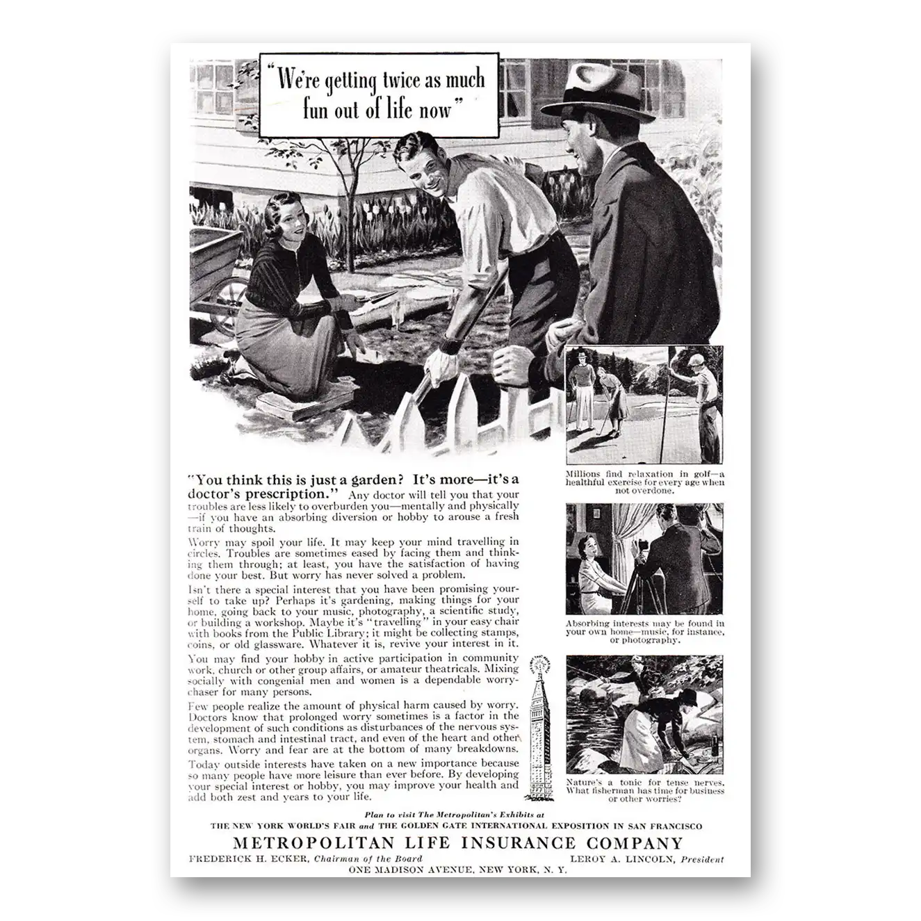 1939 Metropolitan Life Insurance Print Ad | Fun Out Life
