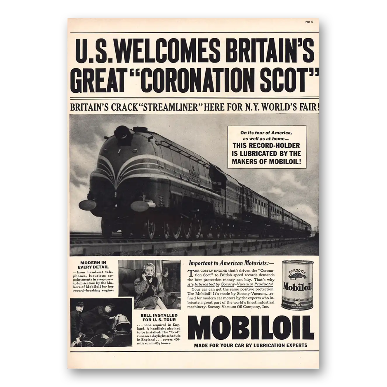 1939 Mobiloil Print Ad | Great Coronation Scot1939 Mobiloil Print Ad | Great Coronation Scot