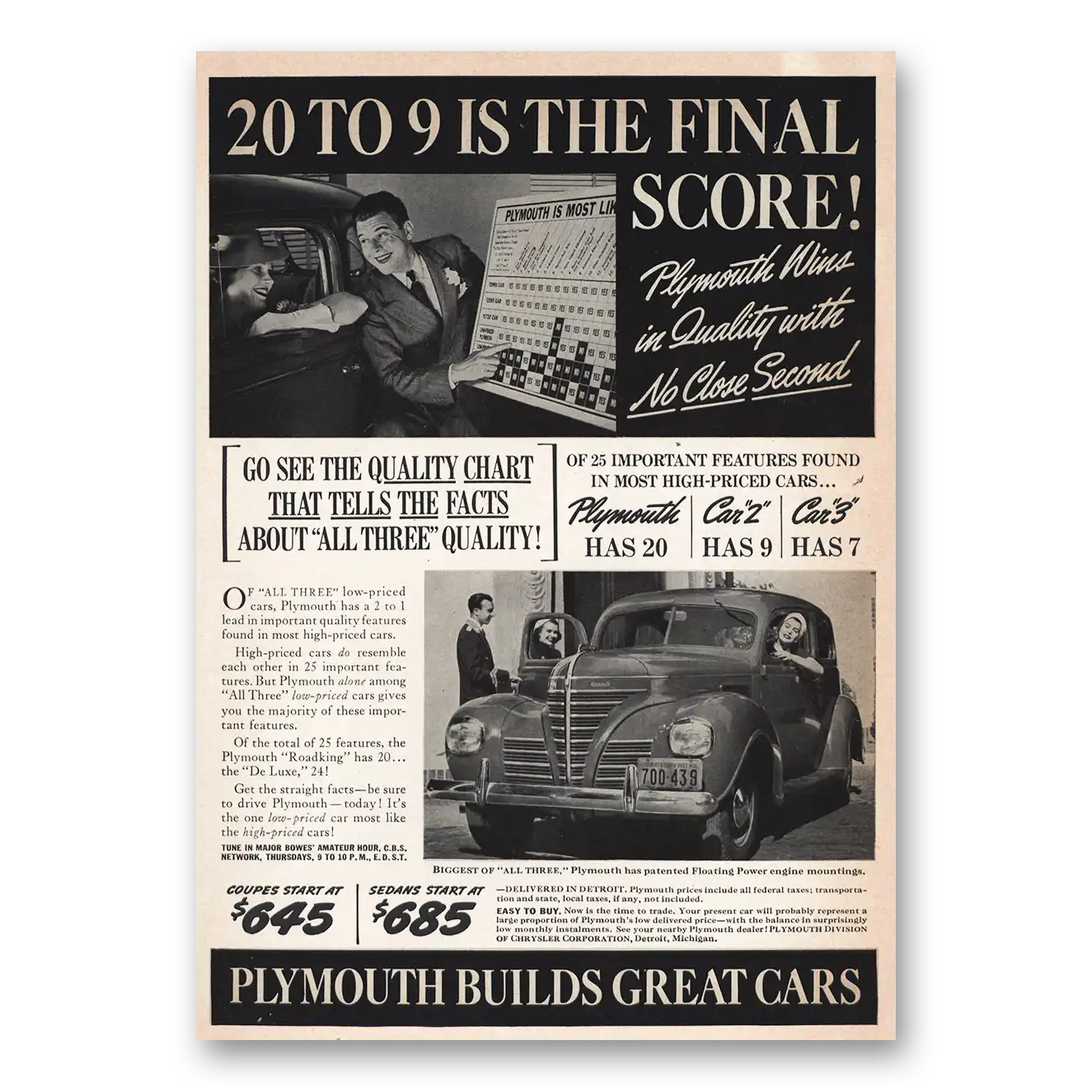 1939 Plymouth Print Ad | Final Score