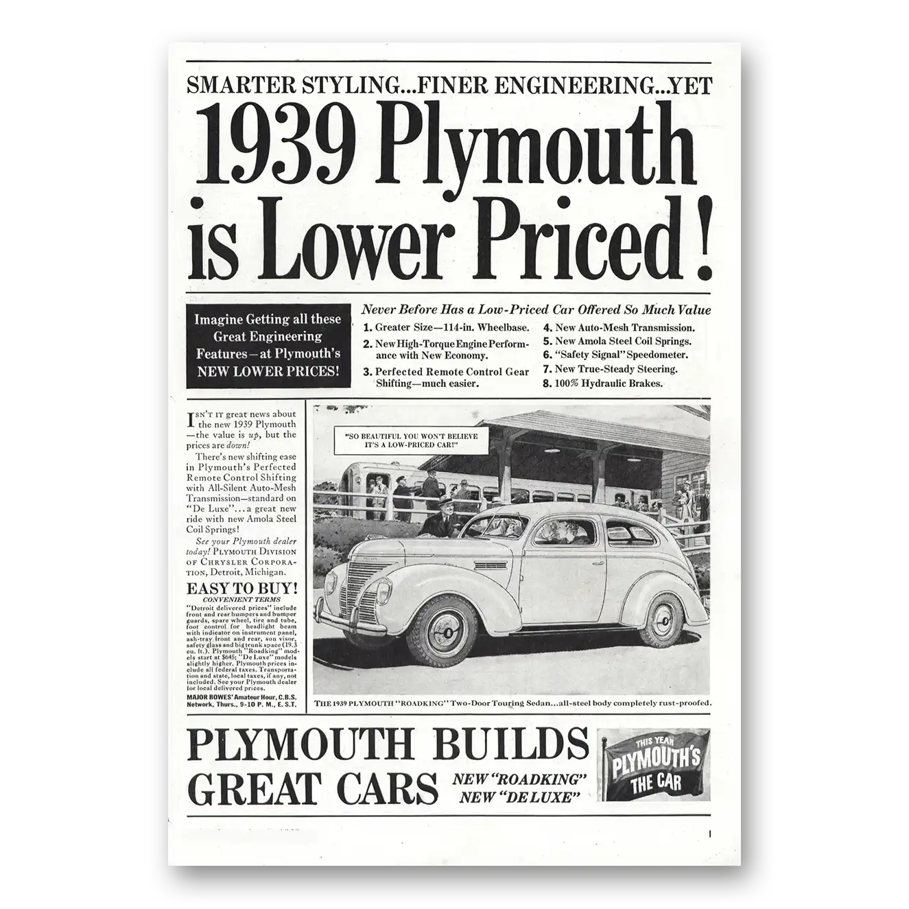 1939 Plymouth Print Ad | Lower Priced
