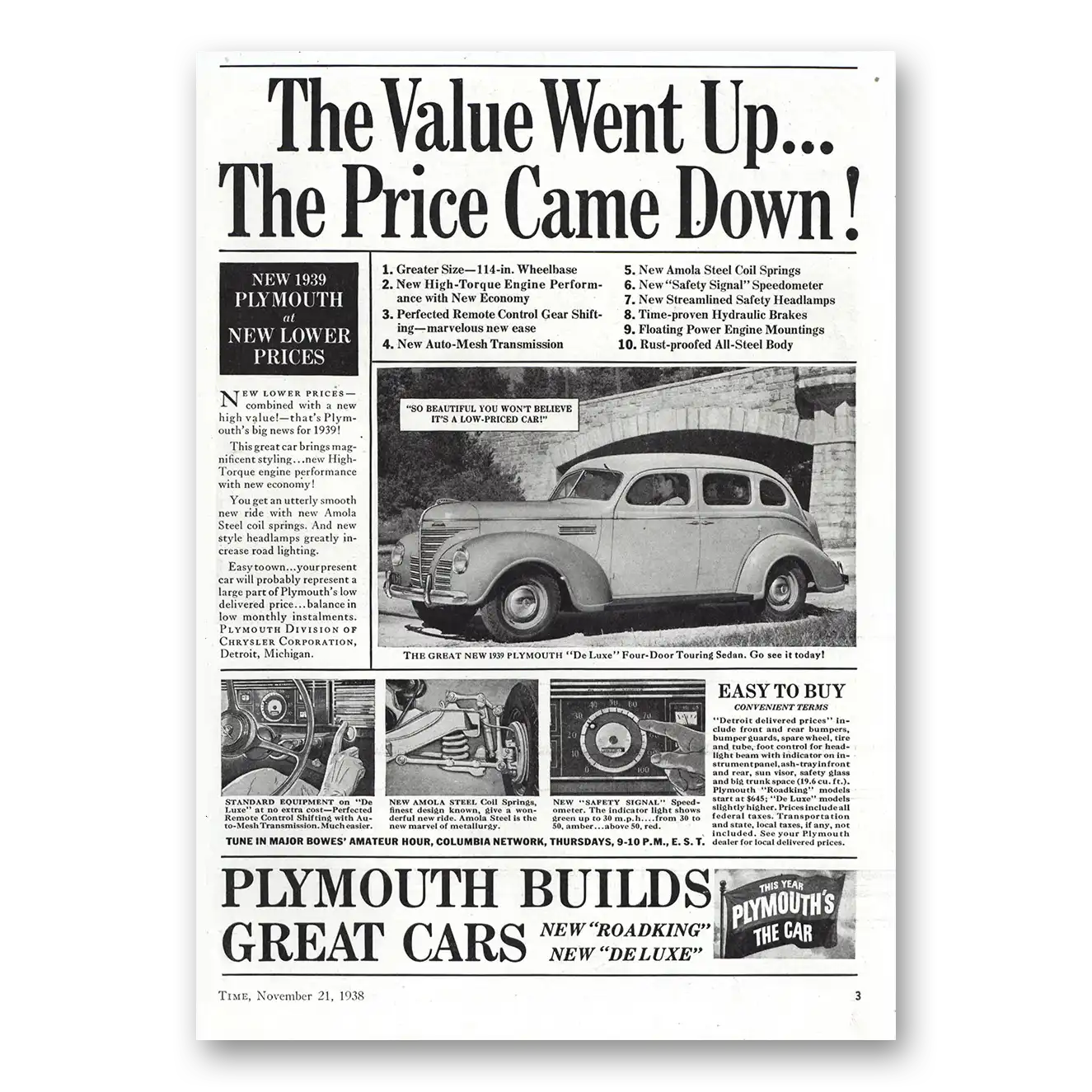 1939 Plymouth Print Ad | Value Went Up Price Came Down