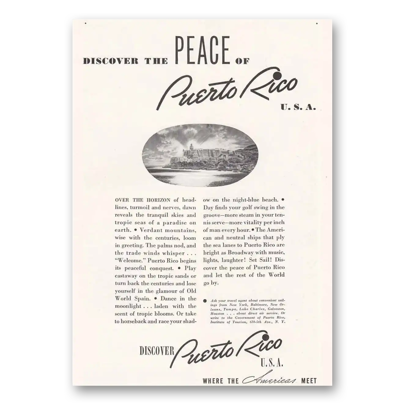1939 Puerto Rico Print Ad | Discover Peace