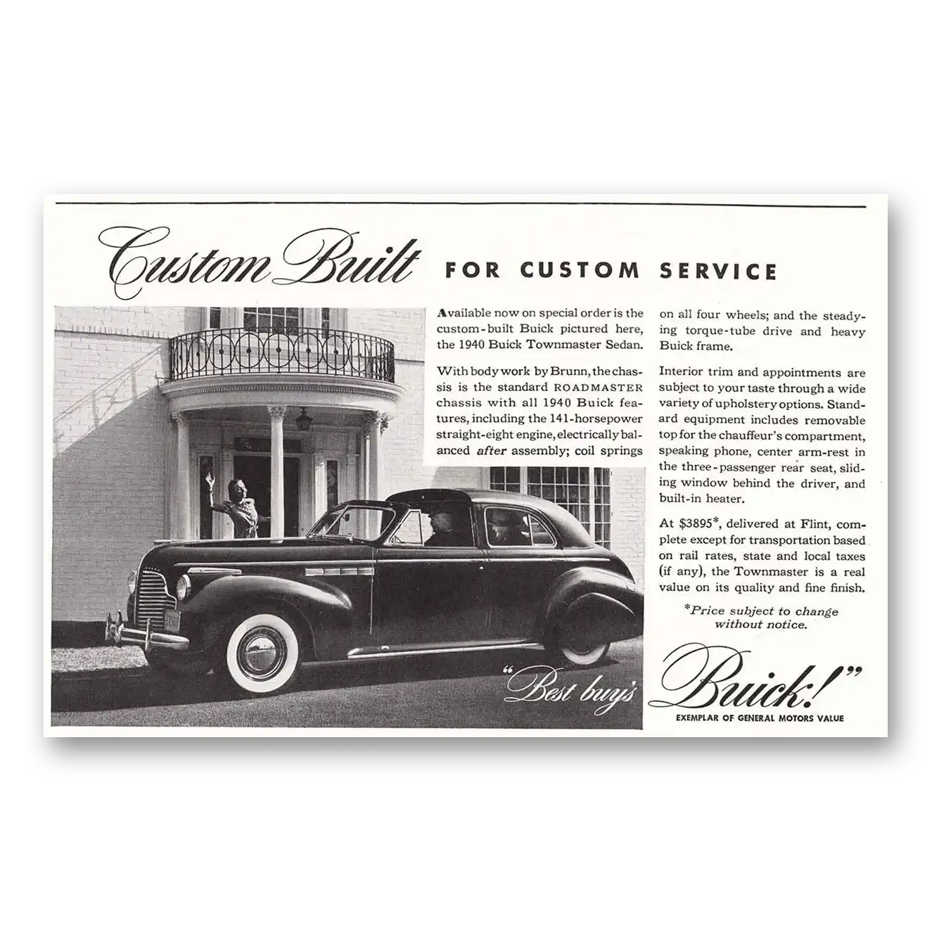 1940 Buick Townmaster Sedan Print Ad | Custom Built