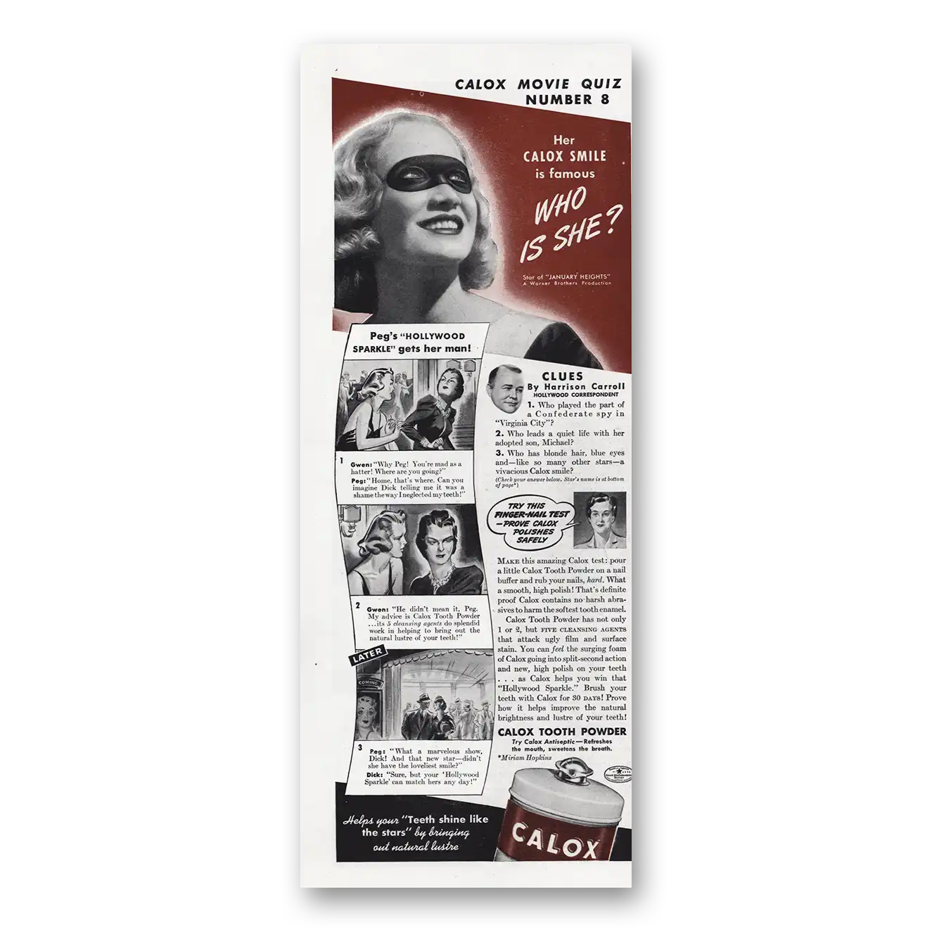 1940 Calox Tooth Powder Print Ad | Who Is She