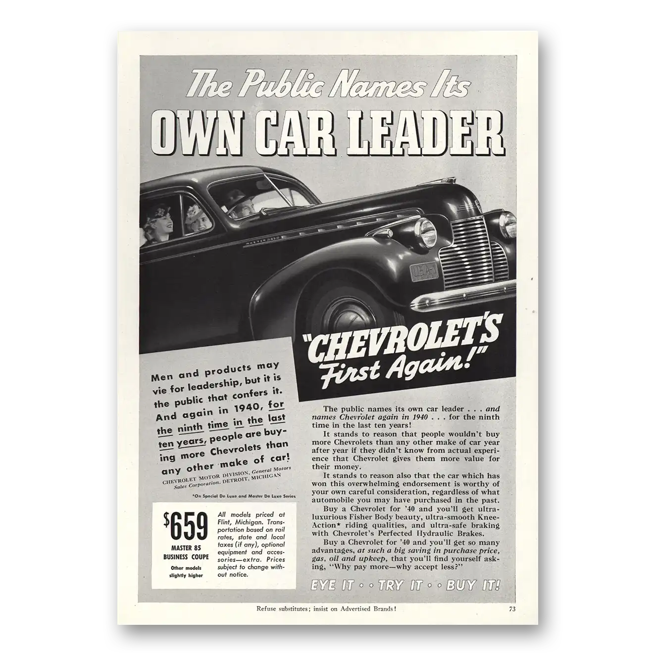 This is an original 1940 Chevrolet print ad published by Chevrolet.