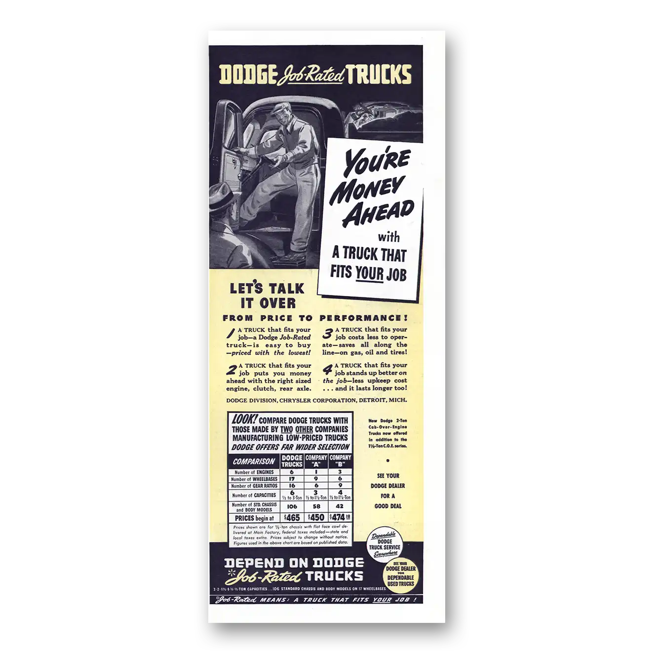 1940 Dodge Trucks Print Ad | Job Rated Trucks You’re Money Ahead