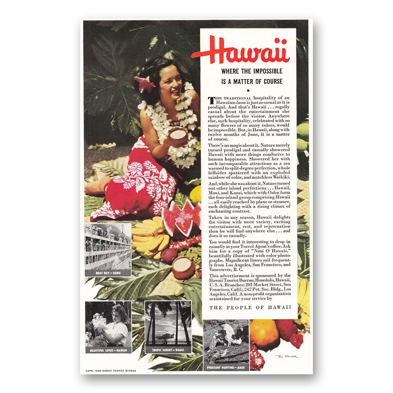 This is an original 1940 Hawaii print ad published by Hawaii Tourism.