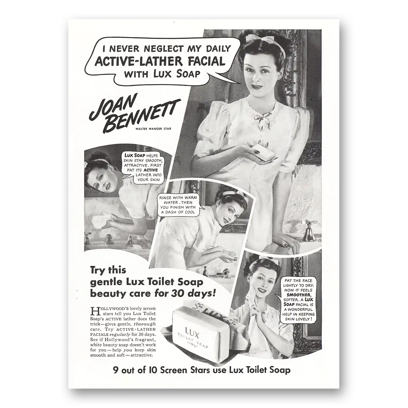 1940 Lux Soap Print Ad | Joan Bennett