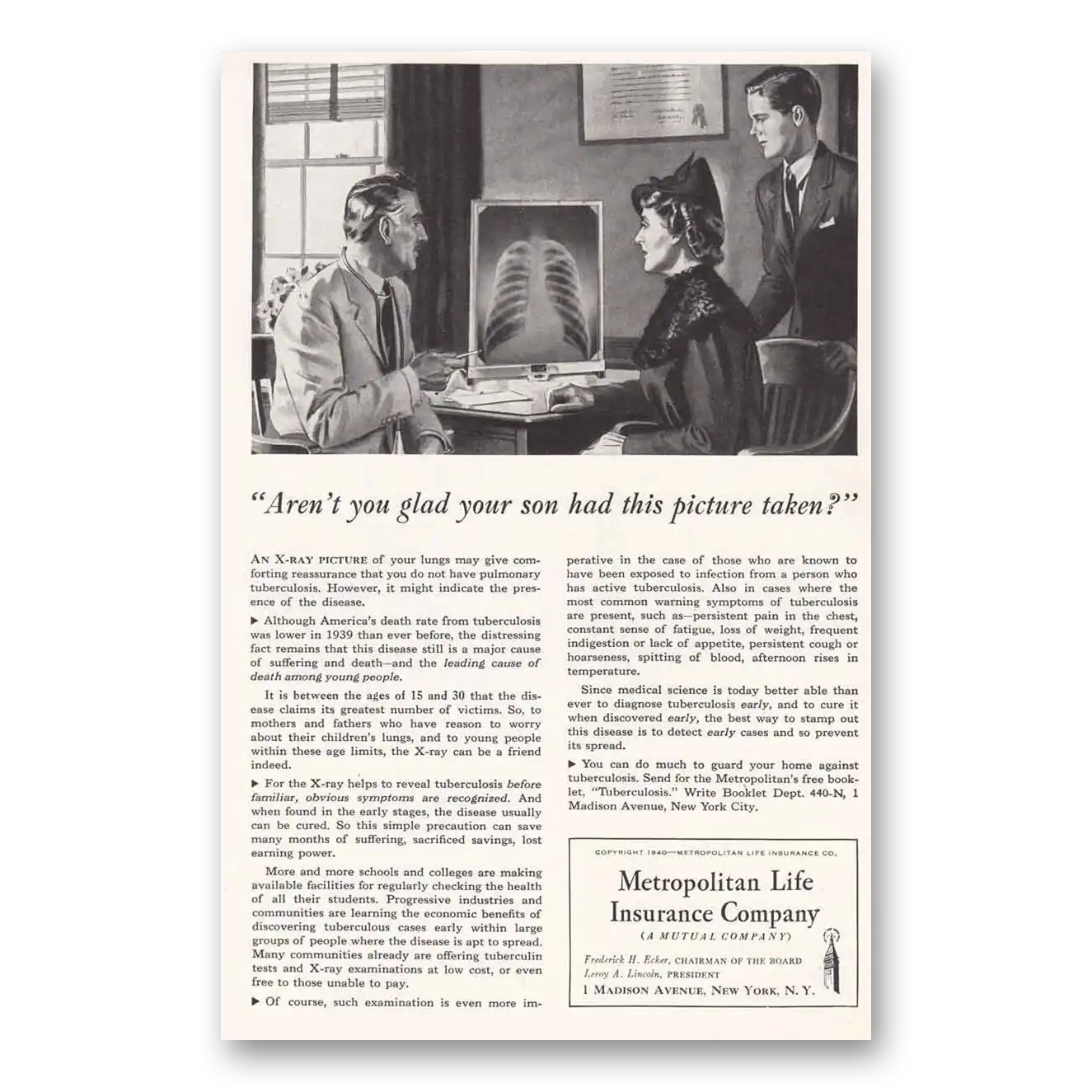 This is an original 1940 Metropolitan Life Insurance print ad published by Metropolitan Insurance.