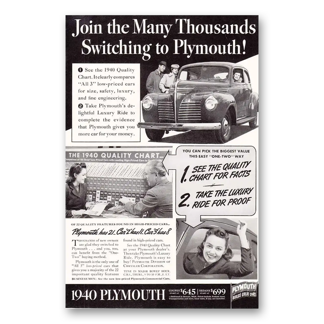 This is an original 1940 Plymouth print ad published by Plymouth.