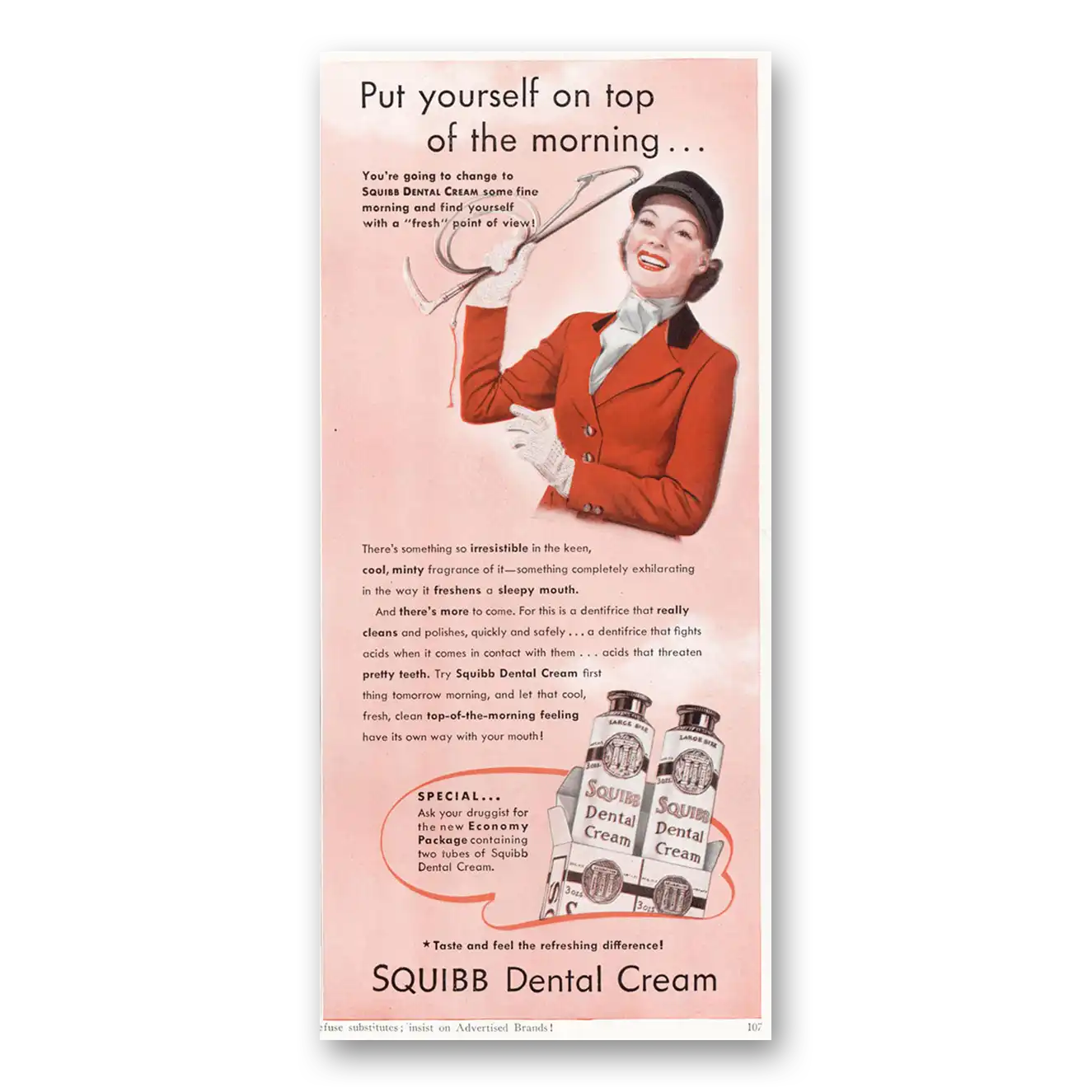 1940 Squibb Dental Cream Print Ad | Top Morning