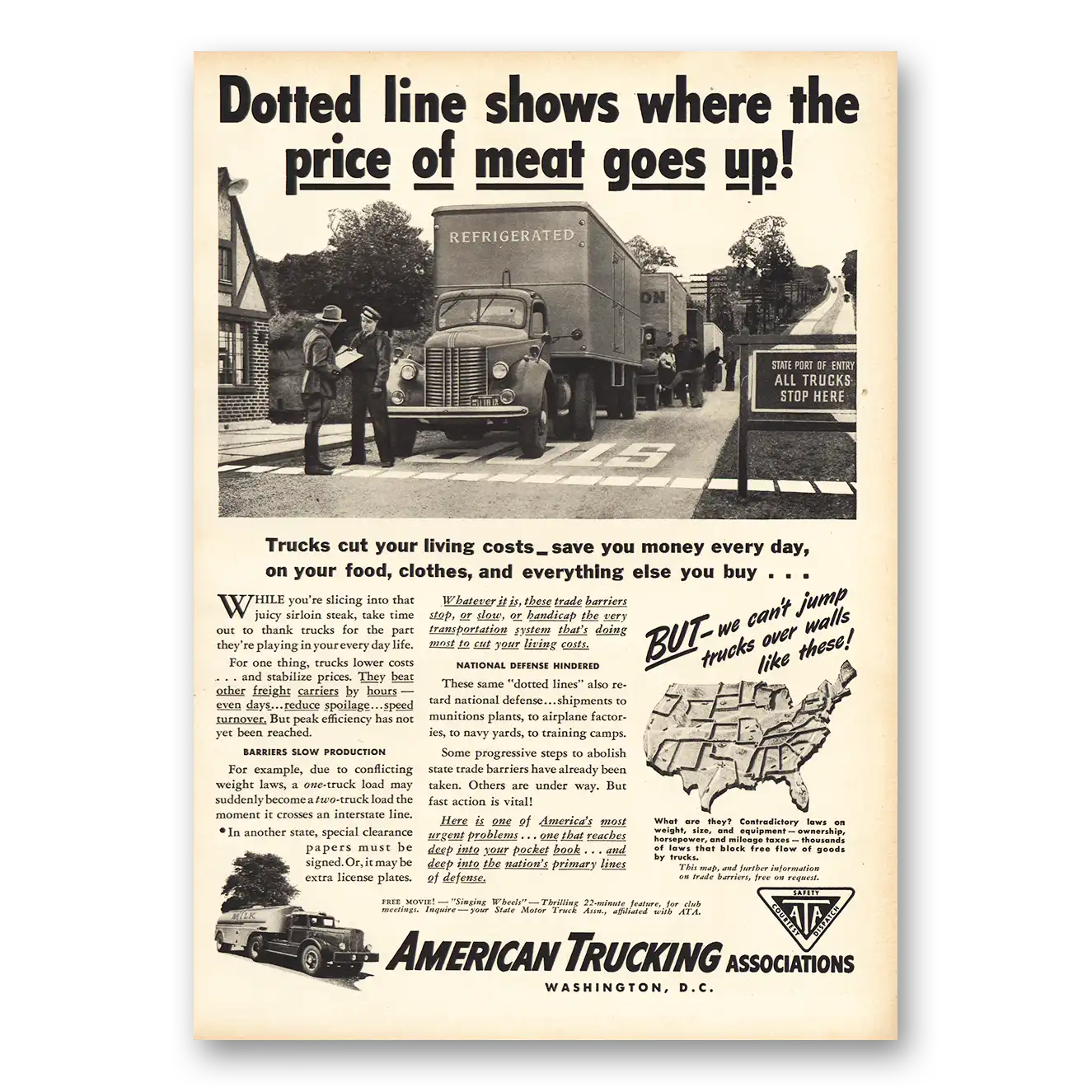1941 American Trucking Print Ad | Dotted Line Price Of Meat1941 American Trucking Print Ad | Dotted Line Price Of Meat