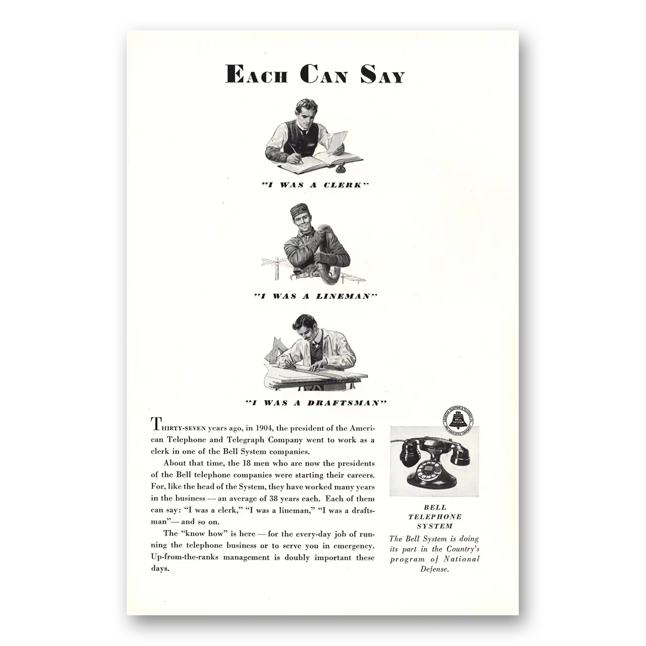 1941 Bell Telephone Print Ad | Linesman Draftsman