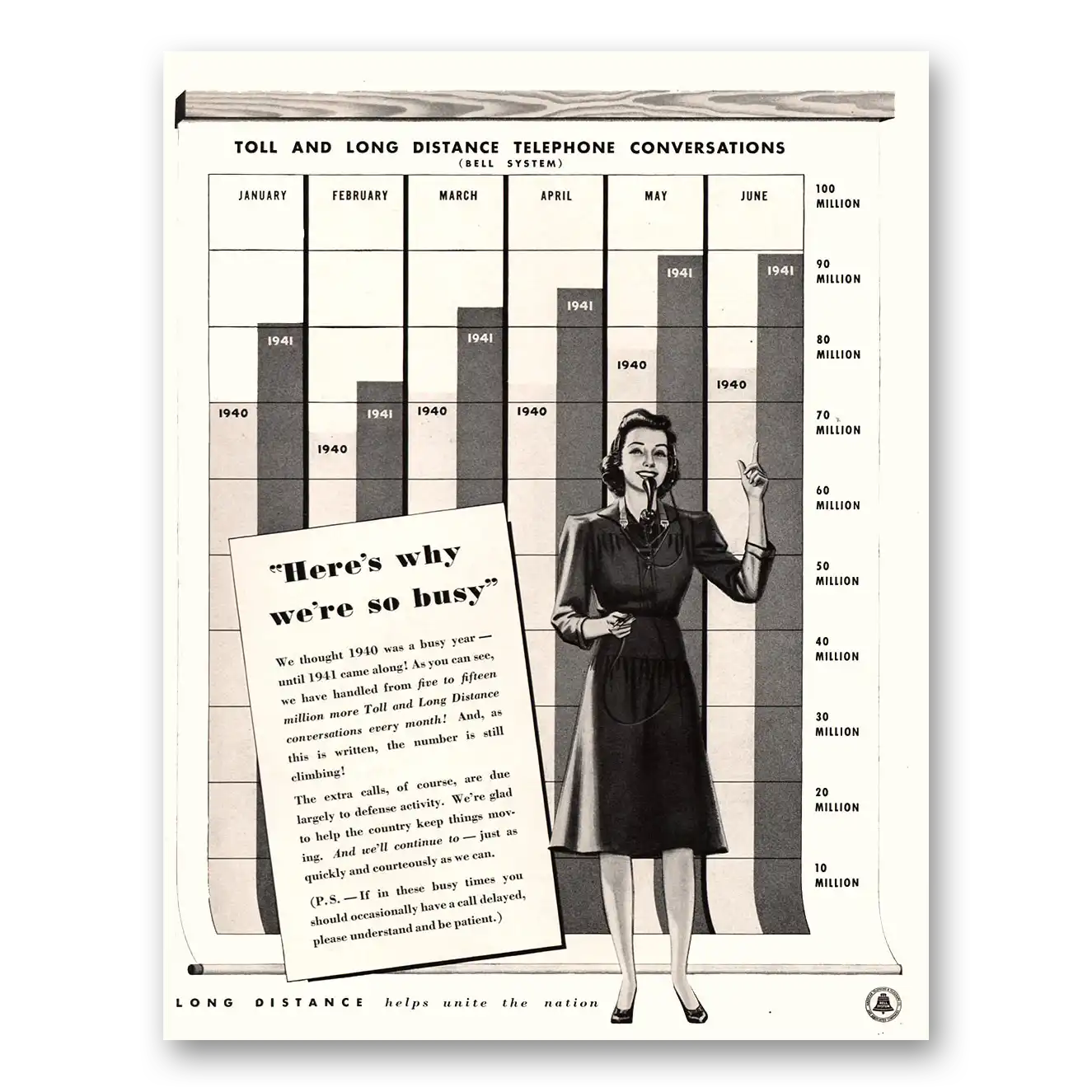 1941 Bell Telephone Print Ad | Toll Long Distance