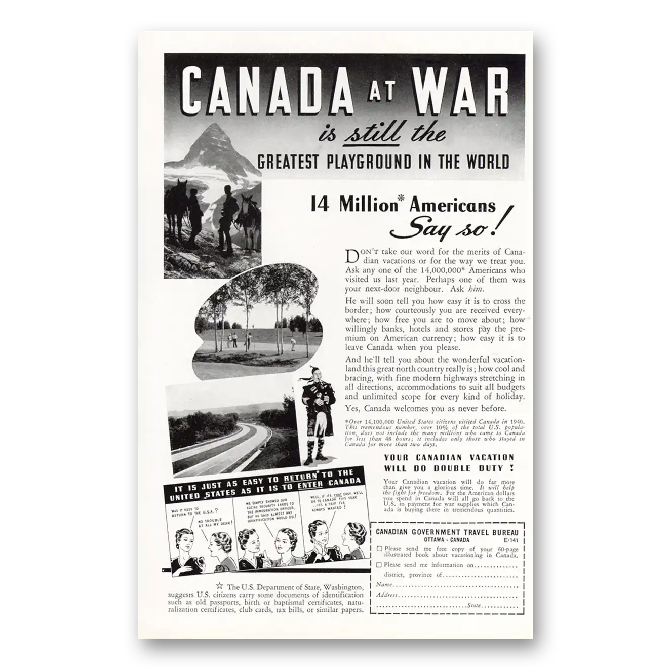 This is an original 1941 Canada print ad published by Canada Tourism.
