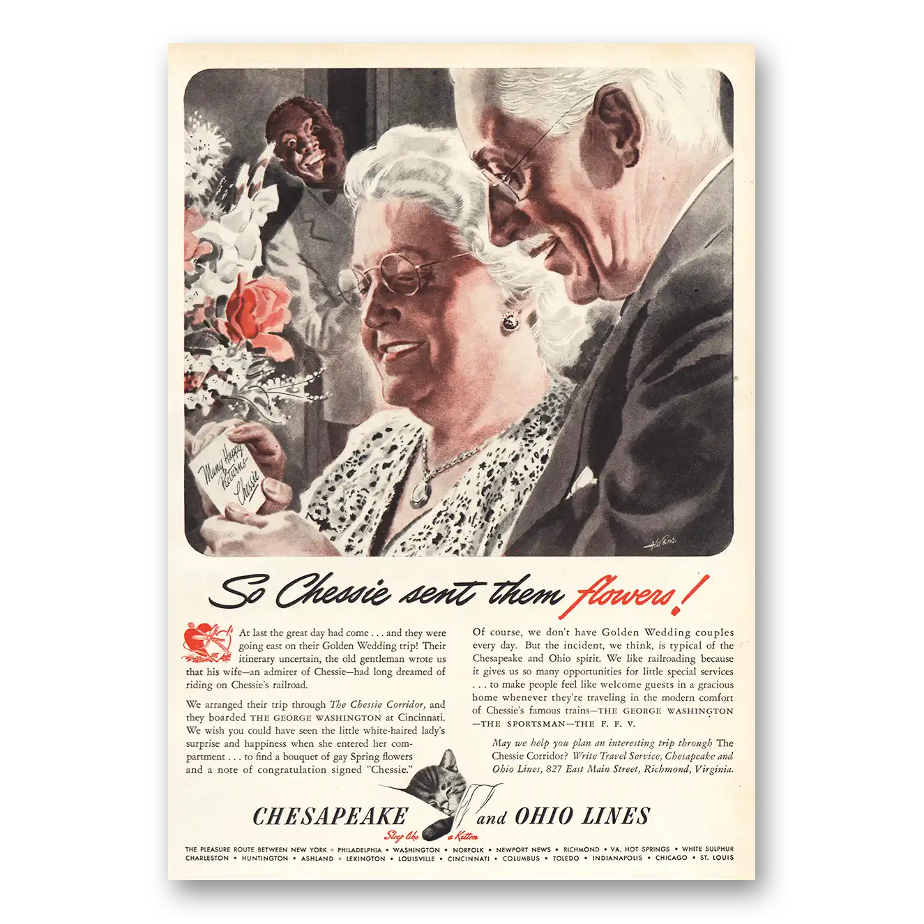 1941 Chesapeake and Ohio Lines Print Ad | Chessie Sent Flowers1941 Chesapeake and Ohio Lines Print Ad | Chessie Sent Flowers