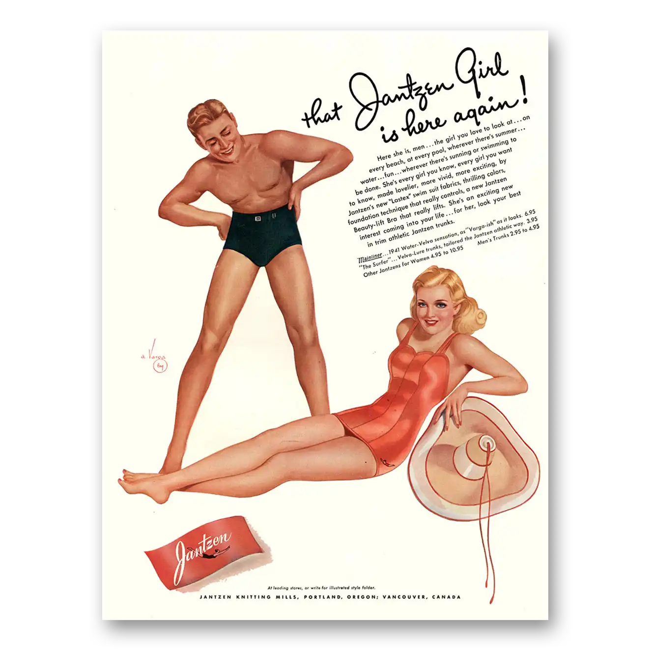 This is an original 1941 Jantzen print ad published by Jantzen.