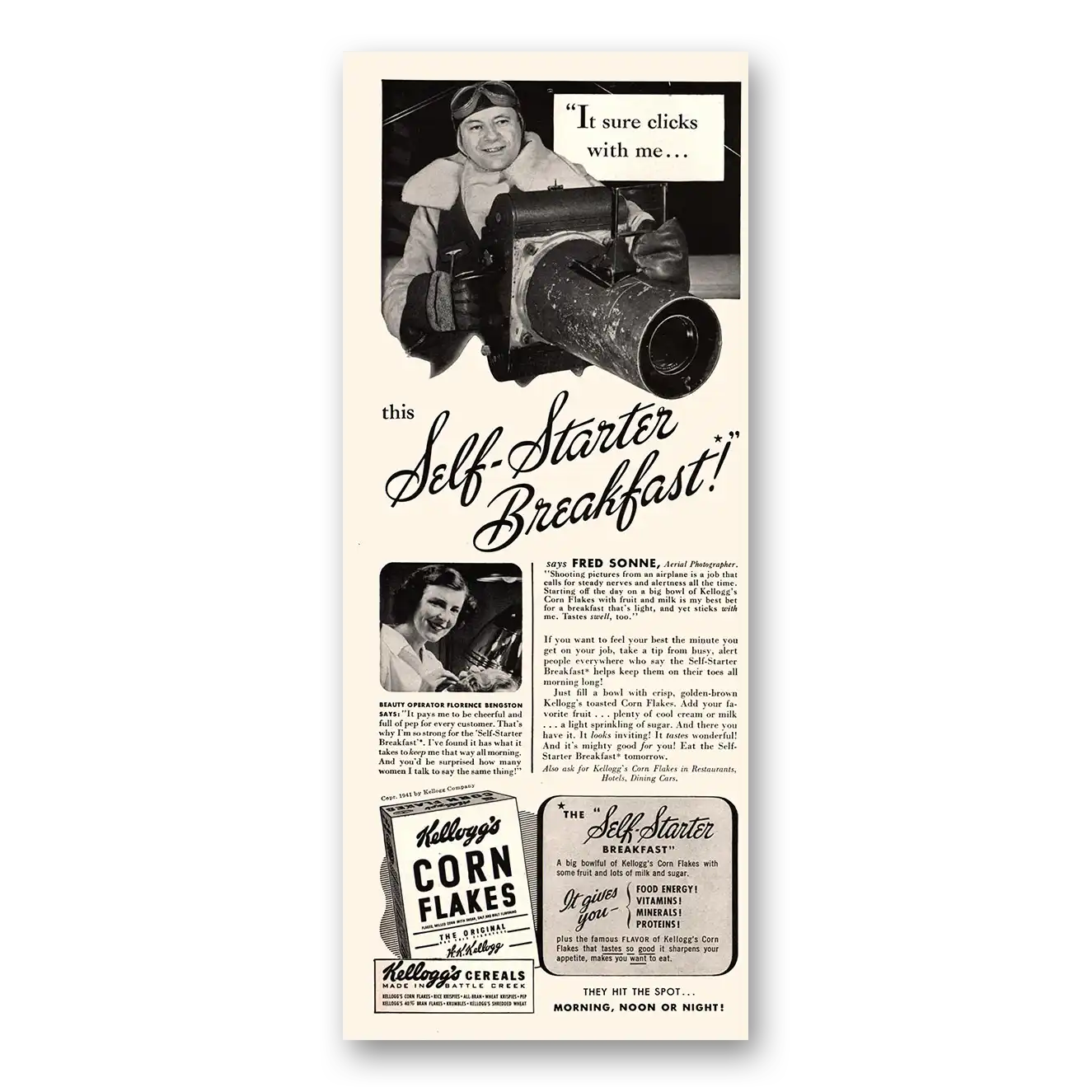 1941 Kelloggs Corn Flakes Print Ad | Fred Sonne
