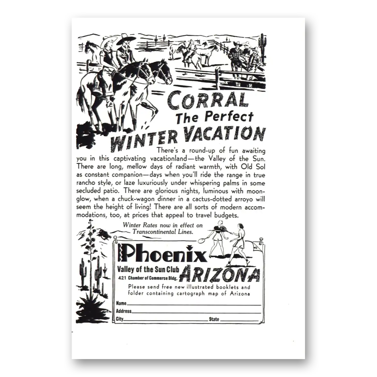 1941 Phoenix Arizona Print Ad | Winter Vacation