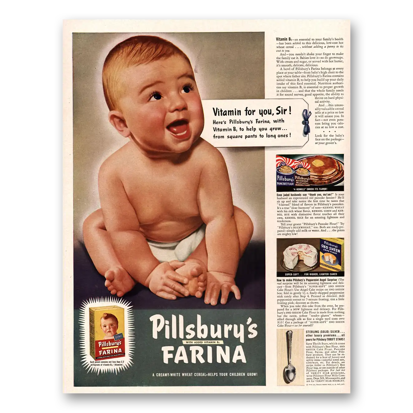 1941 Pillsbury Farina Cereal Print Ad | Vitamin