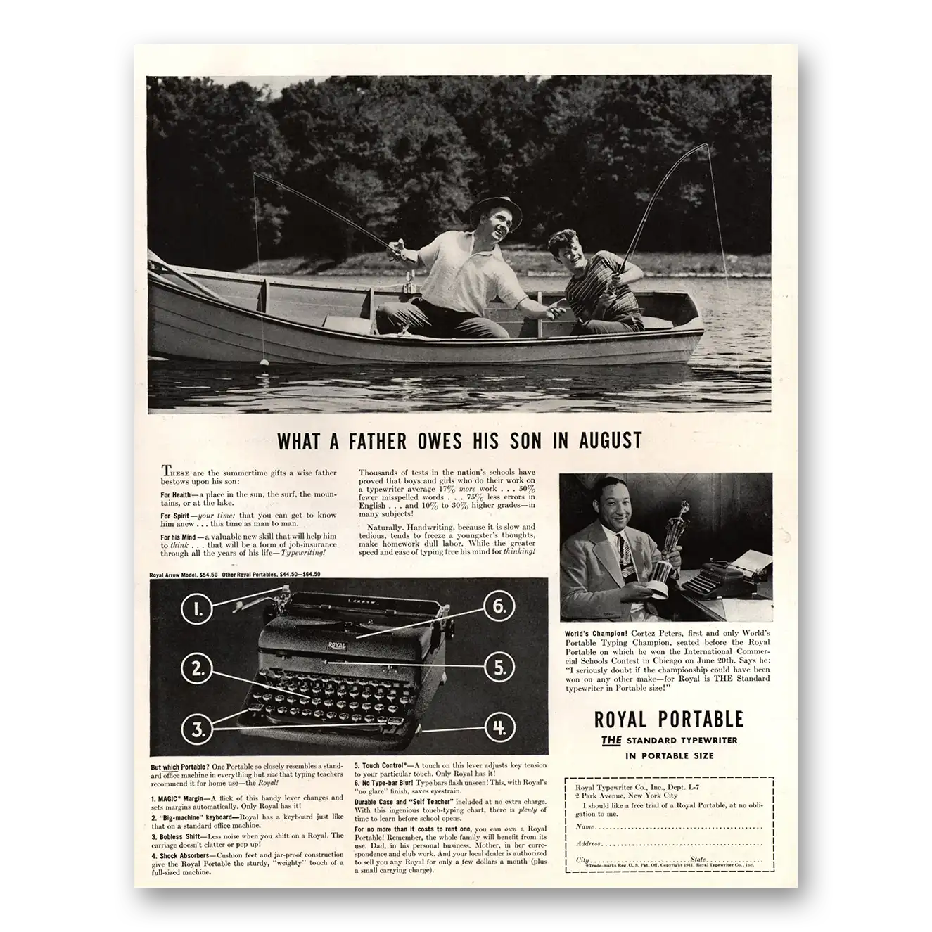 1941 Royal Typewriter Print Ad | Father Owes1941 Royal Typewriter Print Ad | Father Owes