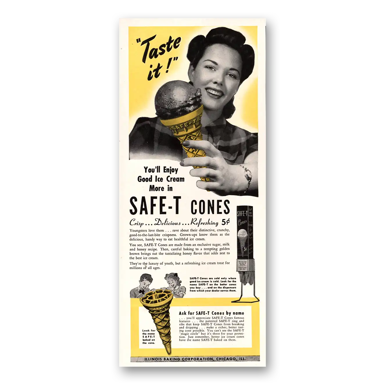 1941 Safe T Cones Print Ad | Ice Cream1941 Safe T Cones Print Ad | Ice Cream