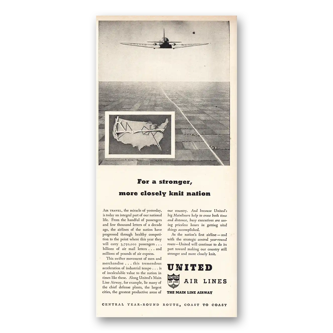 1941 United Airlines Print Ad | More Closely Knit Nation