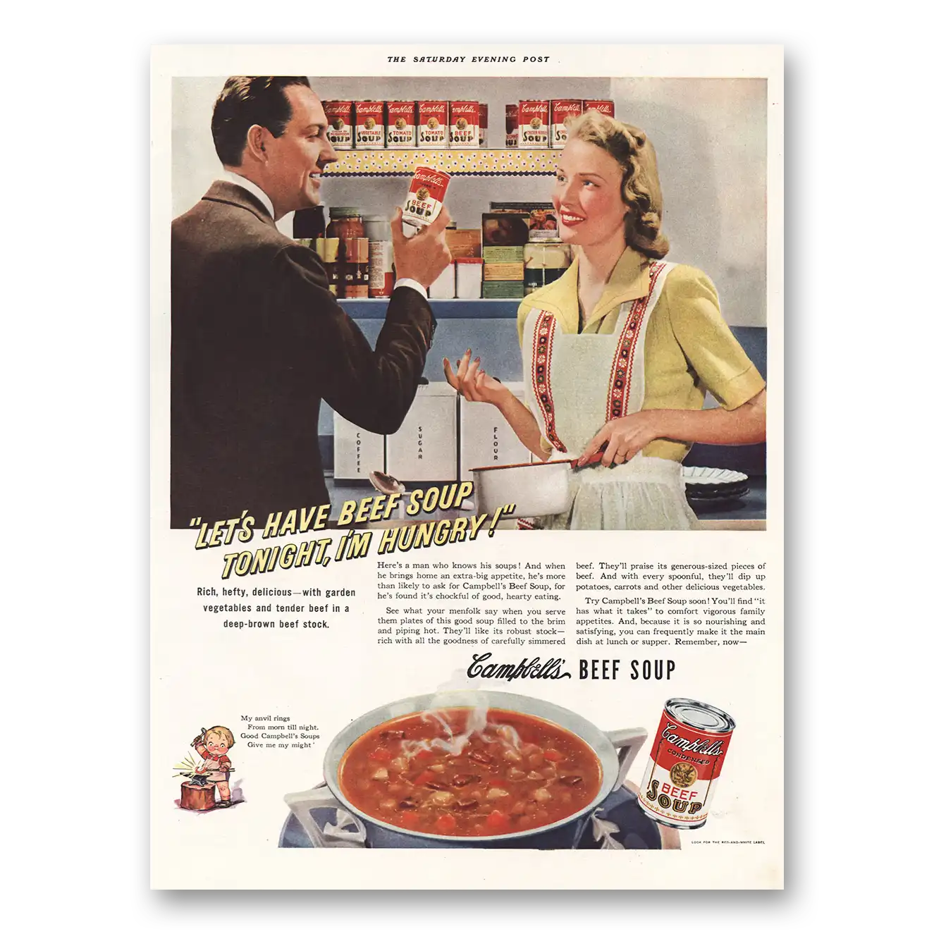 1942 Campbells Soup Print Ad | Have Beef Soup Tonight