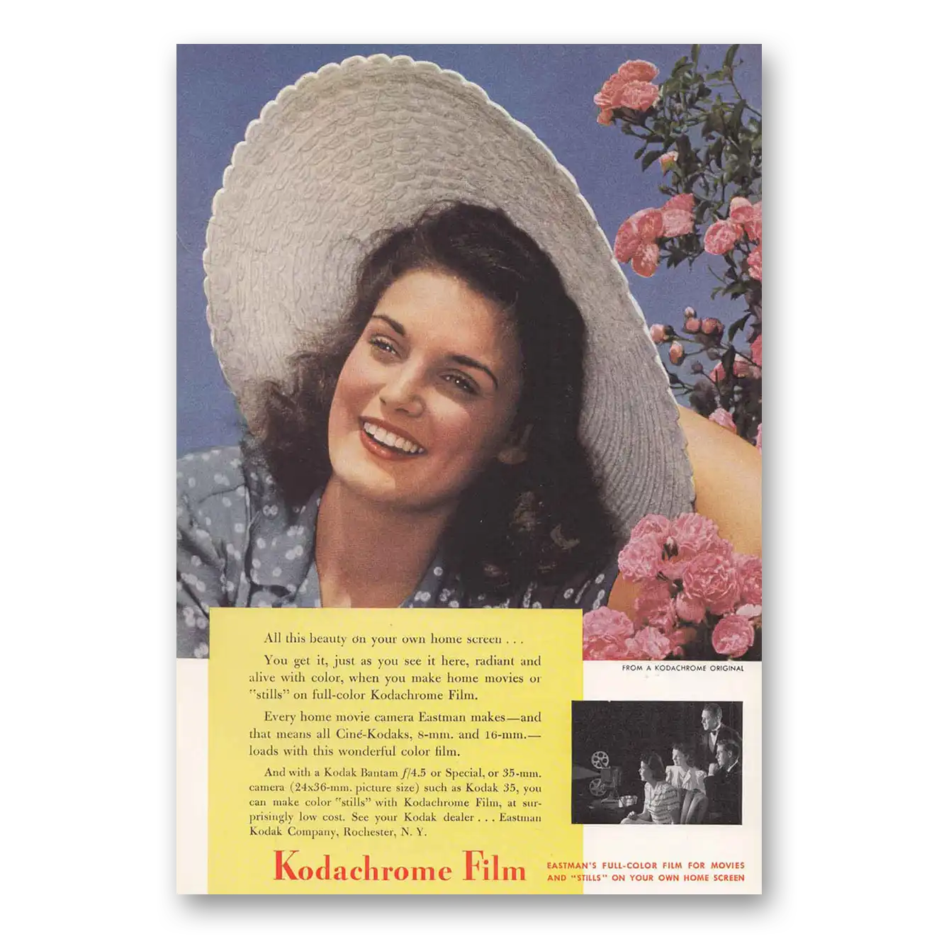 This is an original 1942 Kodachrome Film print ad published by Eastman Kodak.