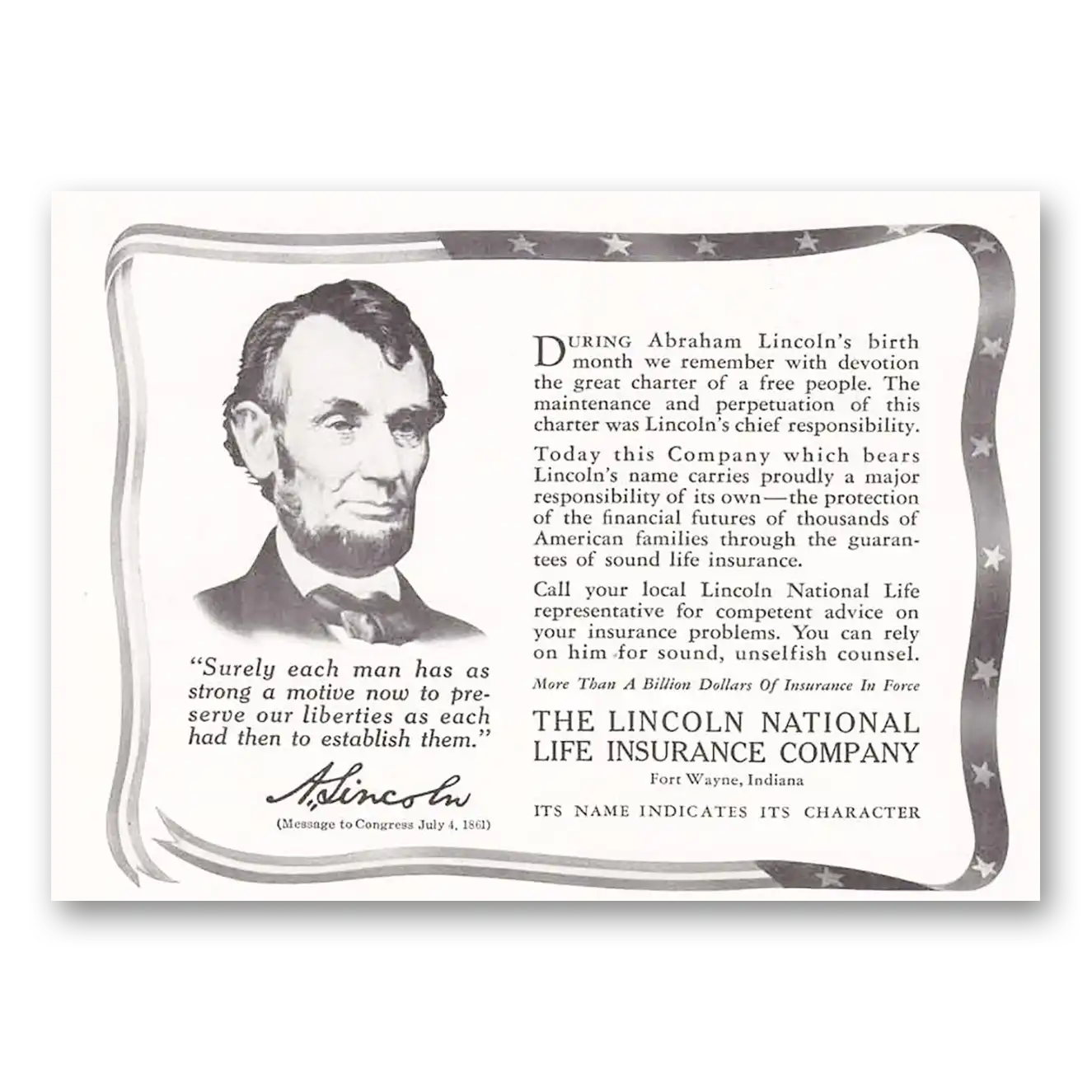 1942 Lincoln National Life Insurance Print Ad | Abraham Lincoln