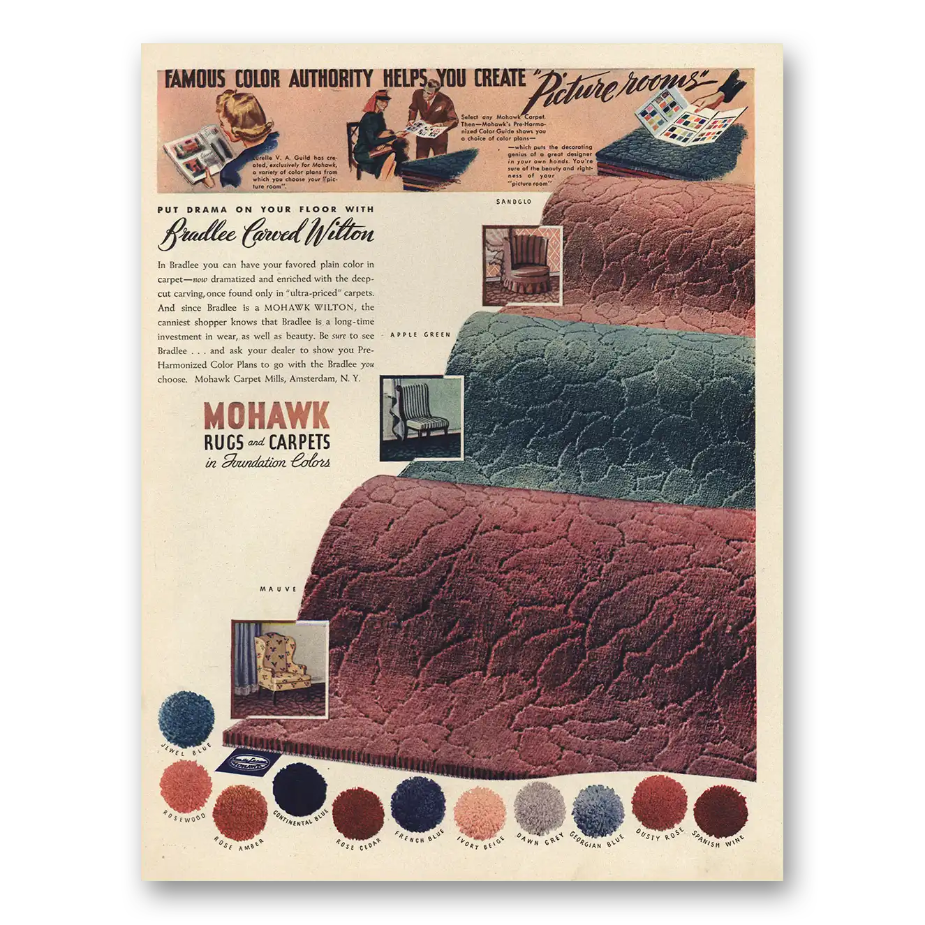 1942 Mohawk Carpet Mills Print Ad | Famous Color