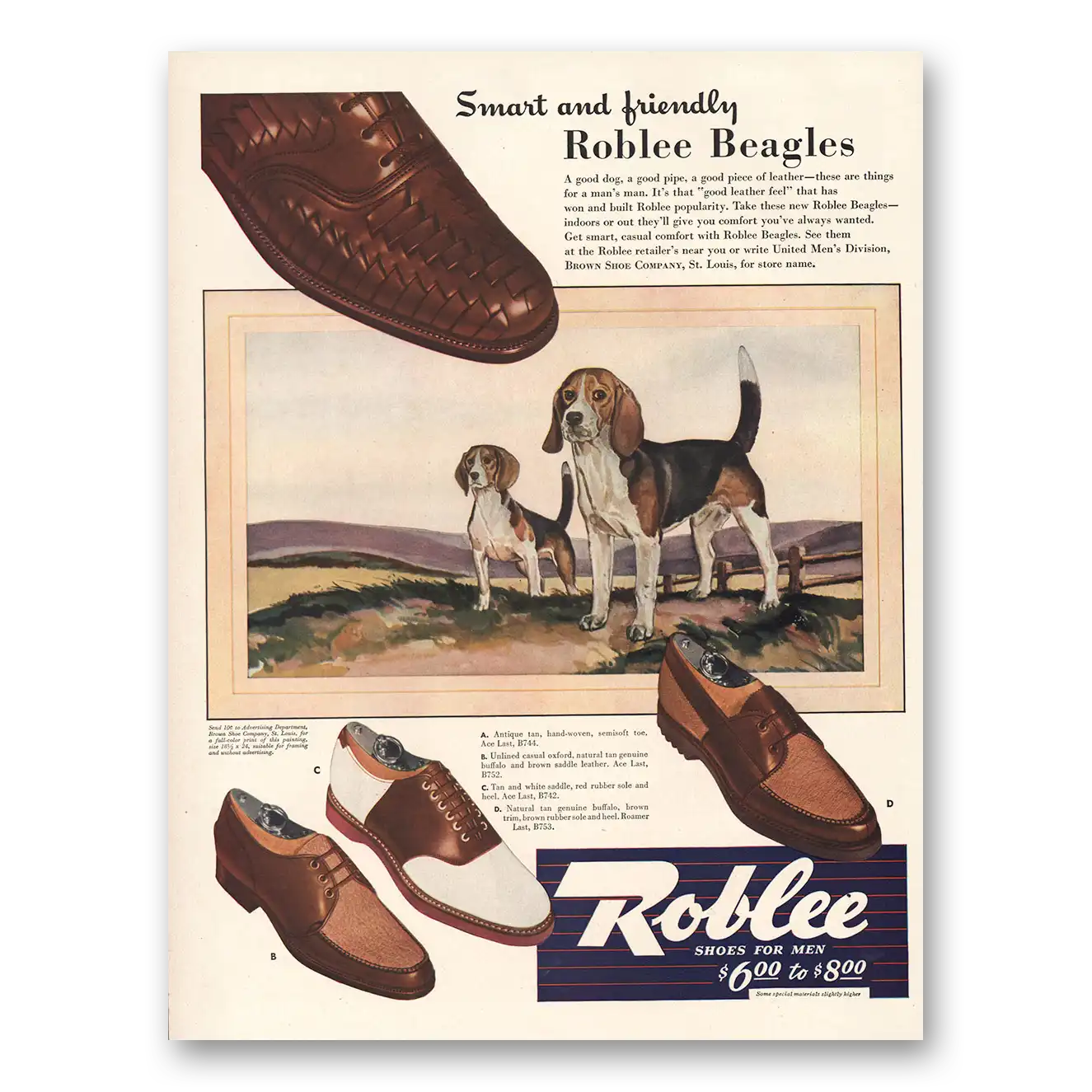 1942 Roblee Shoes Print Ad | Smart And Friendly Beagles