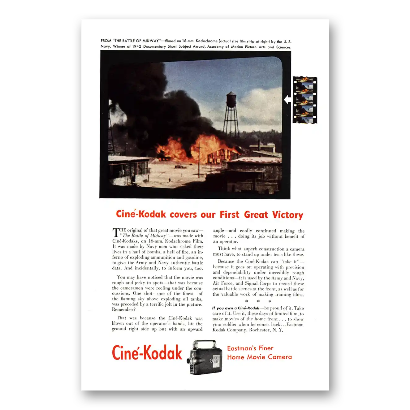 1943 Cine Kodak Camera Print Ad | Battle Midway