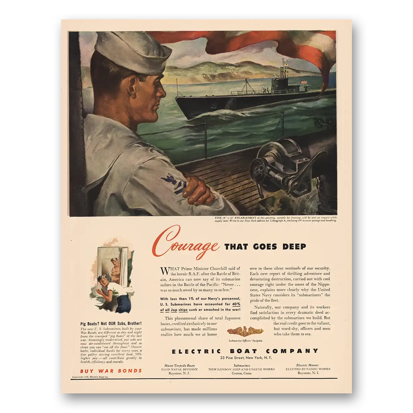 1943 Electric Boat Company Print Ad | Courage That Goes Deep