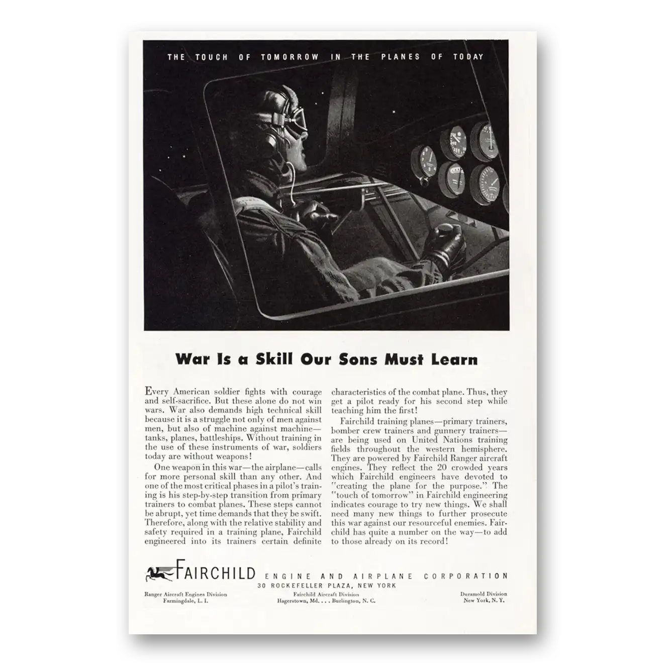 This is an original 1943 Fairchild Engine print ad published by Fairchild Engine.