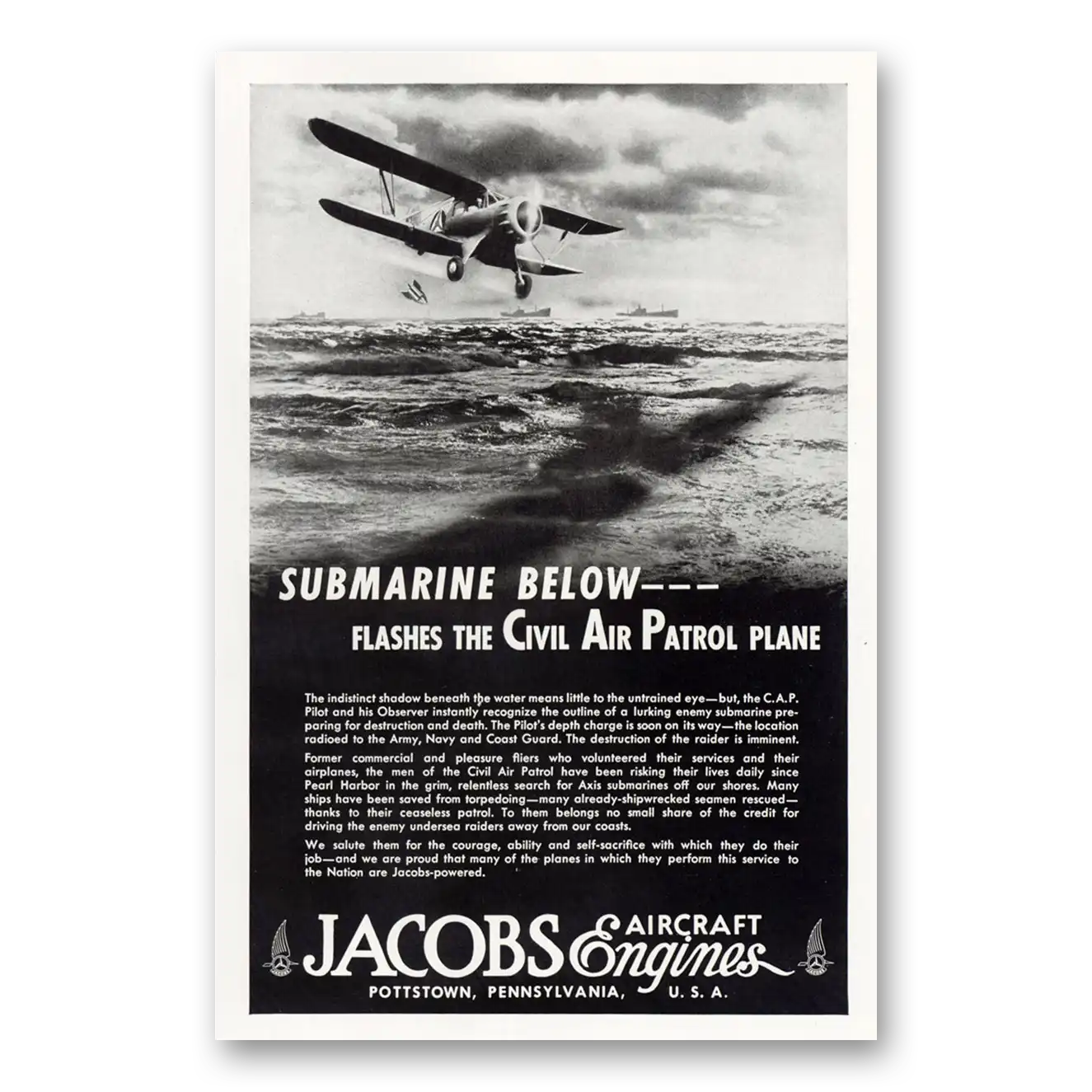 1943 Jacobs Aircraft Engines Print Ad | Submarine Below