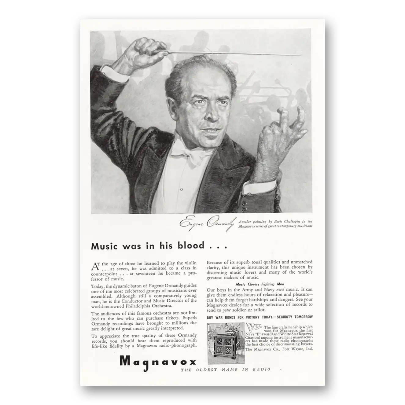 1943 Magnavox Radio Phonograph Print Ad | Eugene Ormandy