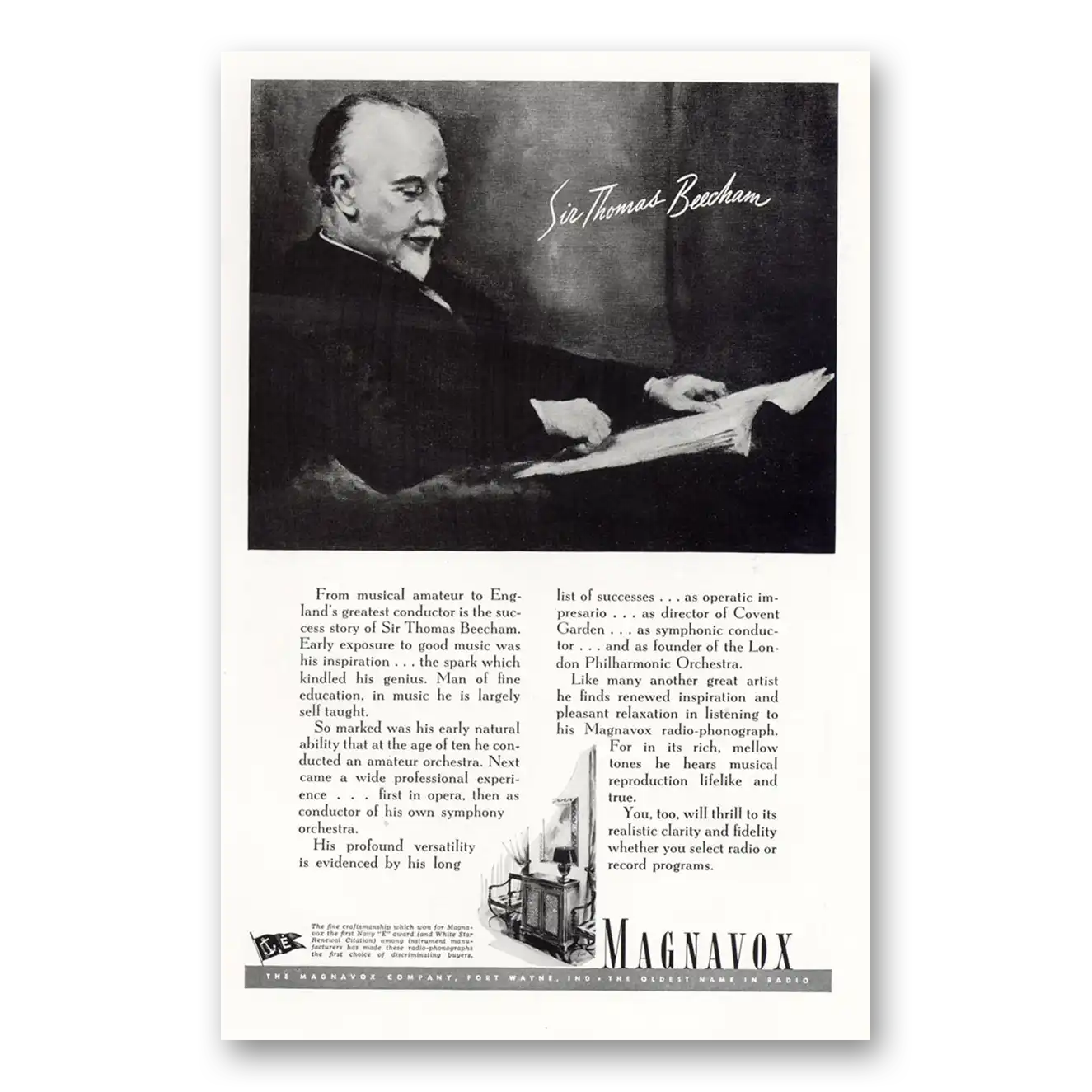1943 Magnavox Radio Phonograph Print Ad | Sir Thomas Beecham