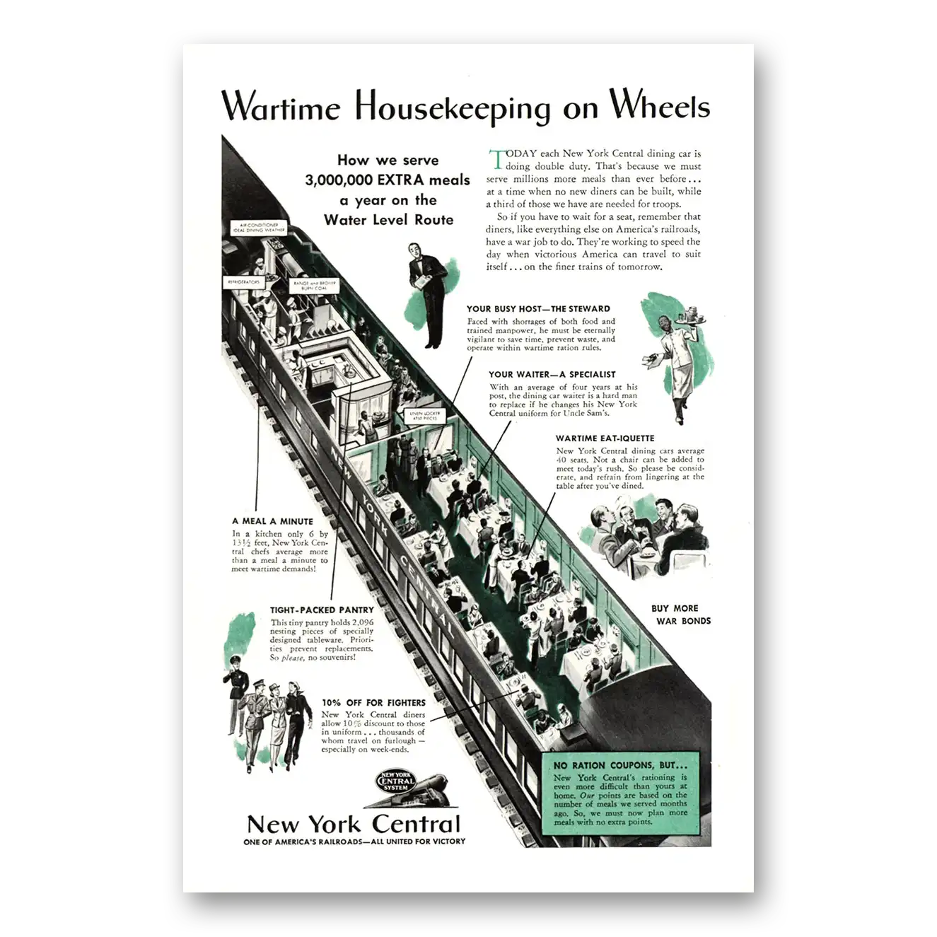 1943 New York Central Print Ad | Wartime