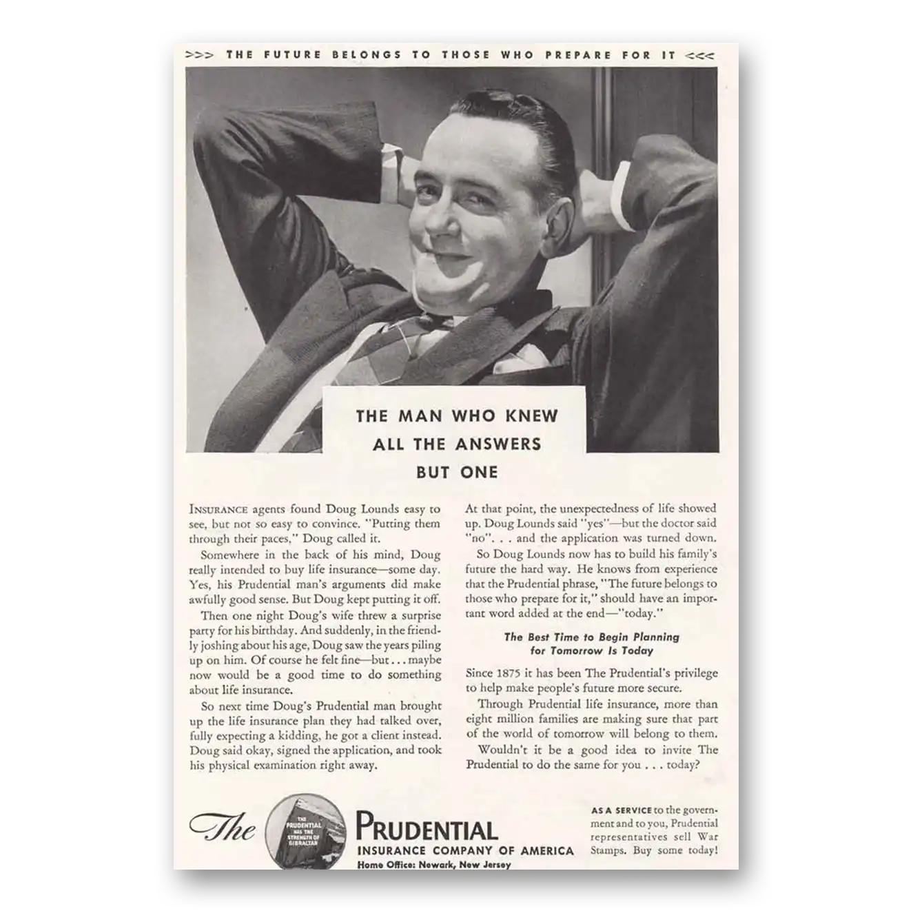 1943 Prudential Insurance Print Ad | Man Who Knew