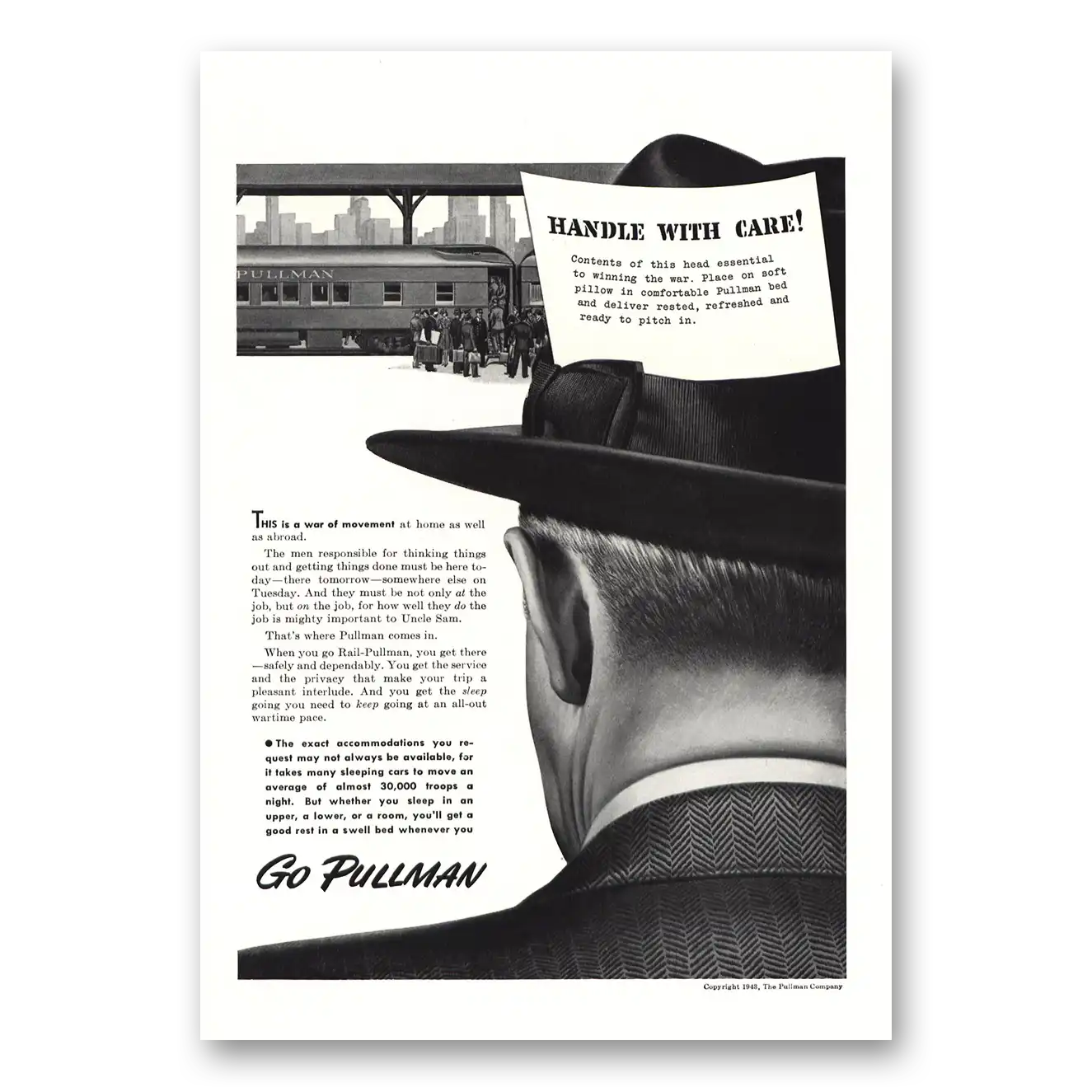 1943 Pullman Print Ad | Handle With Care