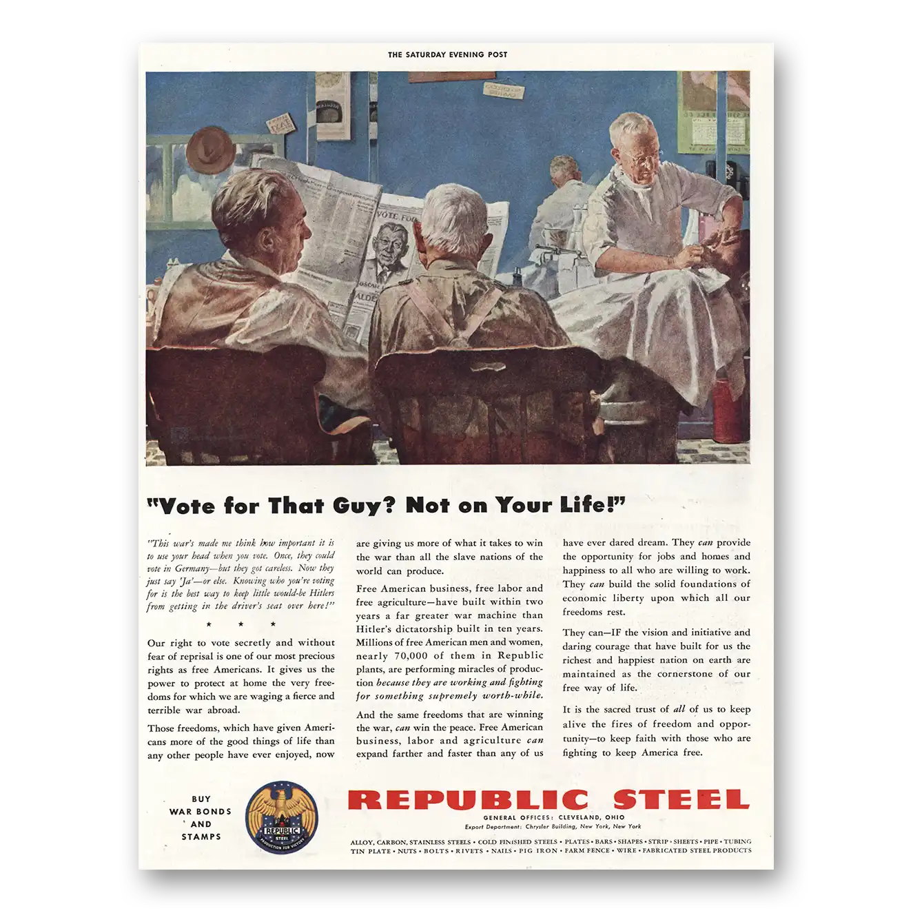 1943 Republic Steel Print Ad | Vote For That Guy1943 Republic Steel Print Ad | Vote For That Guy