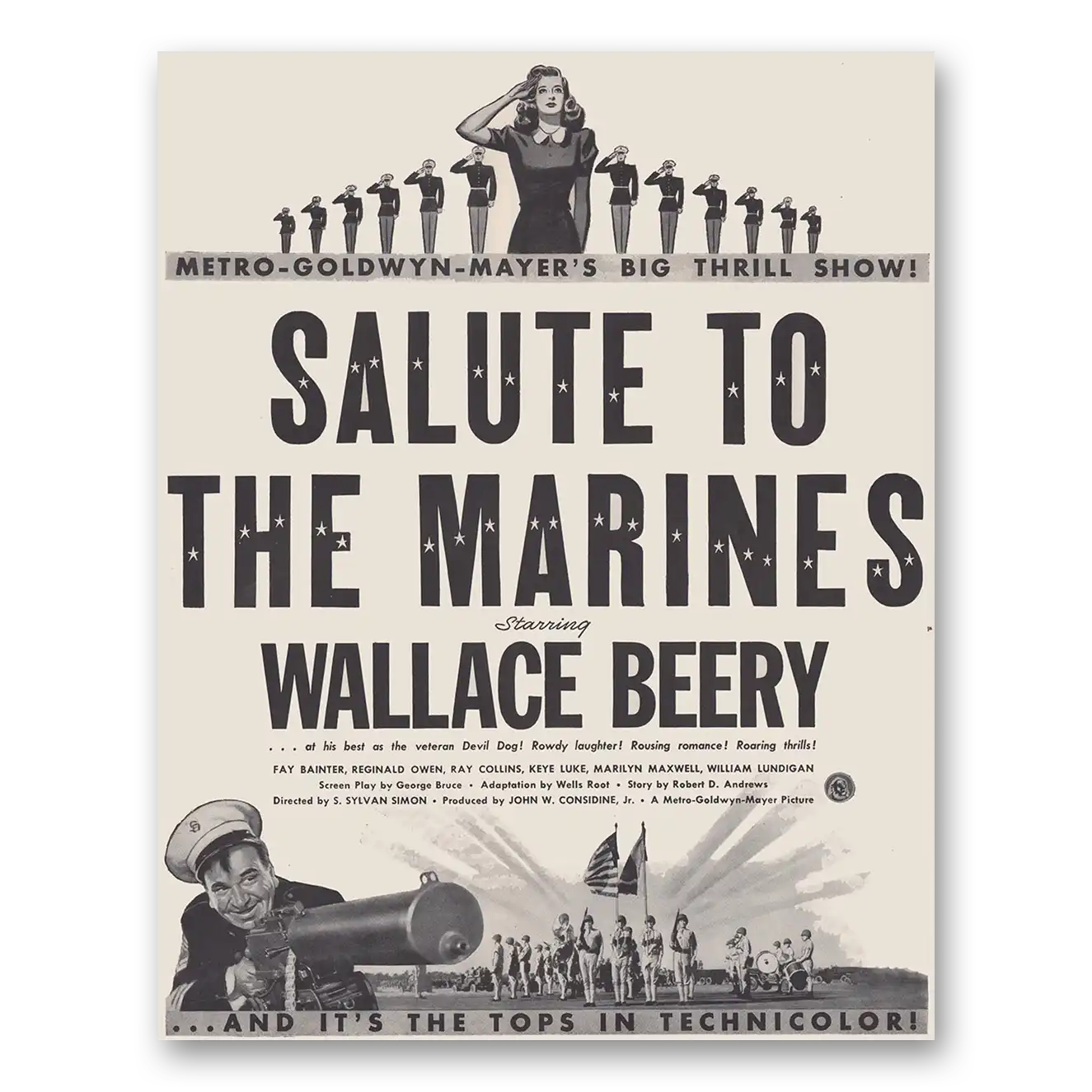 1943 Salute to the Marines Movie Promo Print Ad | Wallace Beery