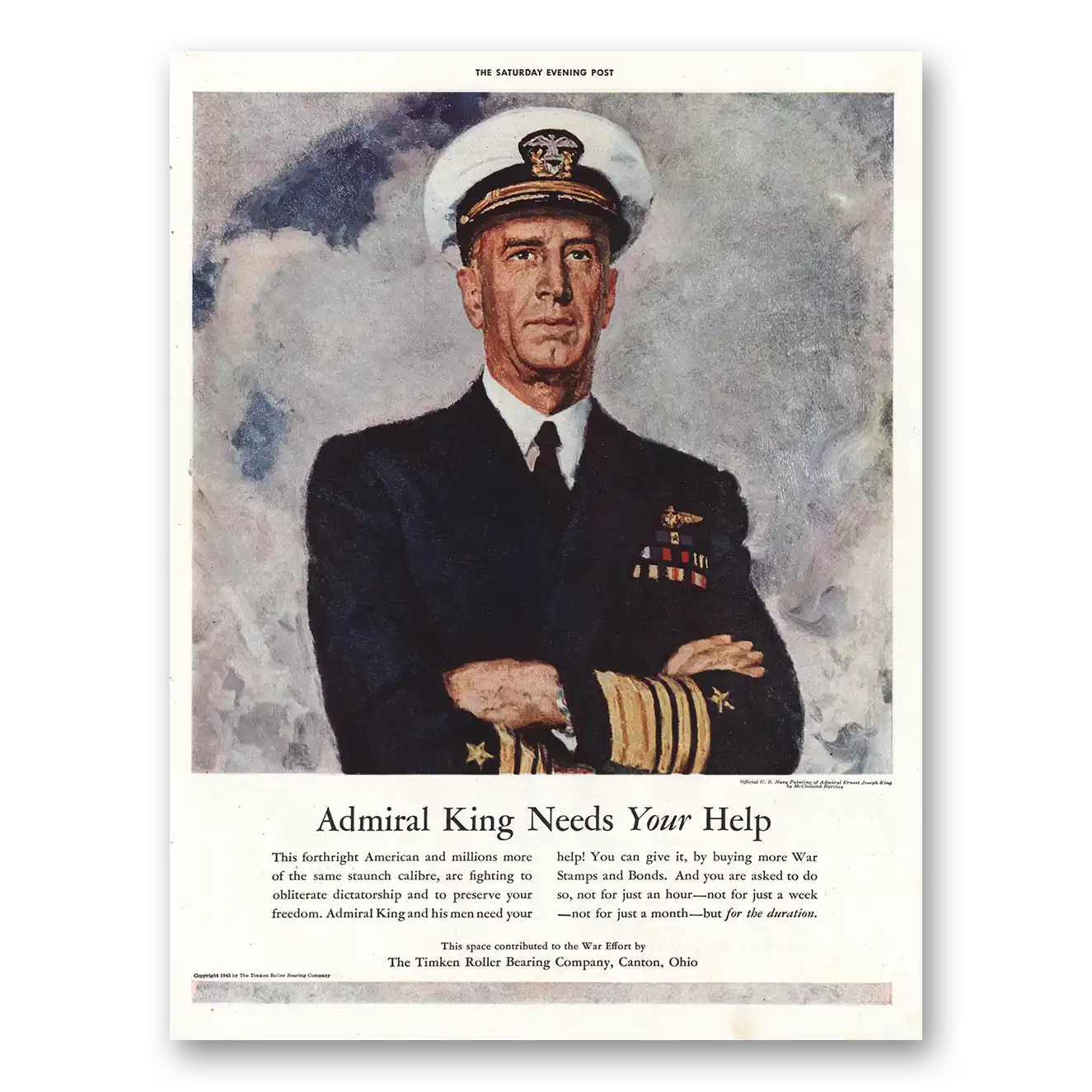 1943 Timken Roller Bearings Print Ad | Admiral King Needs Help