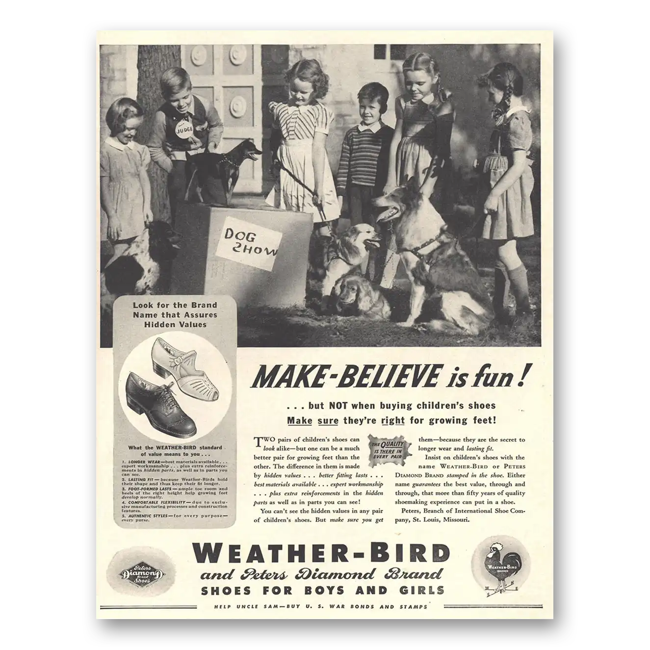 1943 Weather Bird Shoes Print Ad | Make Believe