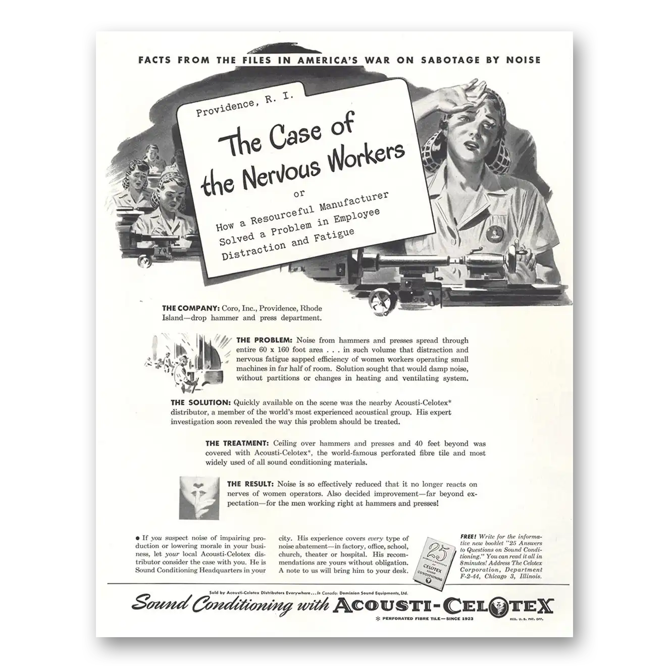 1944 Acousti Celotex Sound Conditioning Print Ad | Nervous Workers