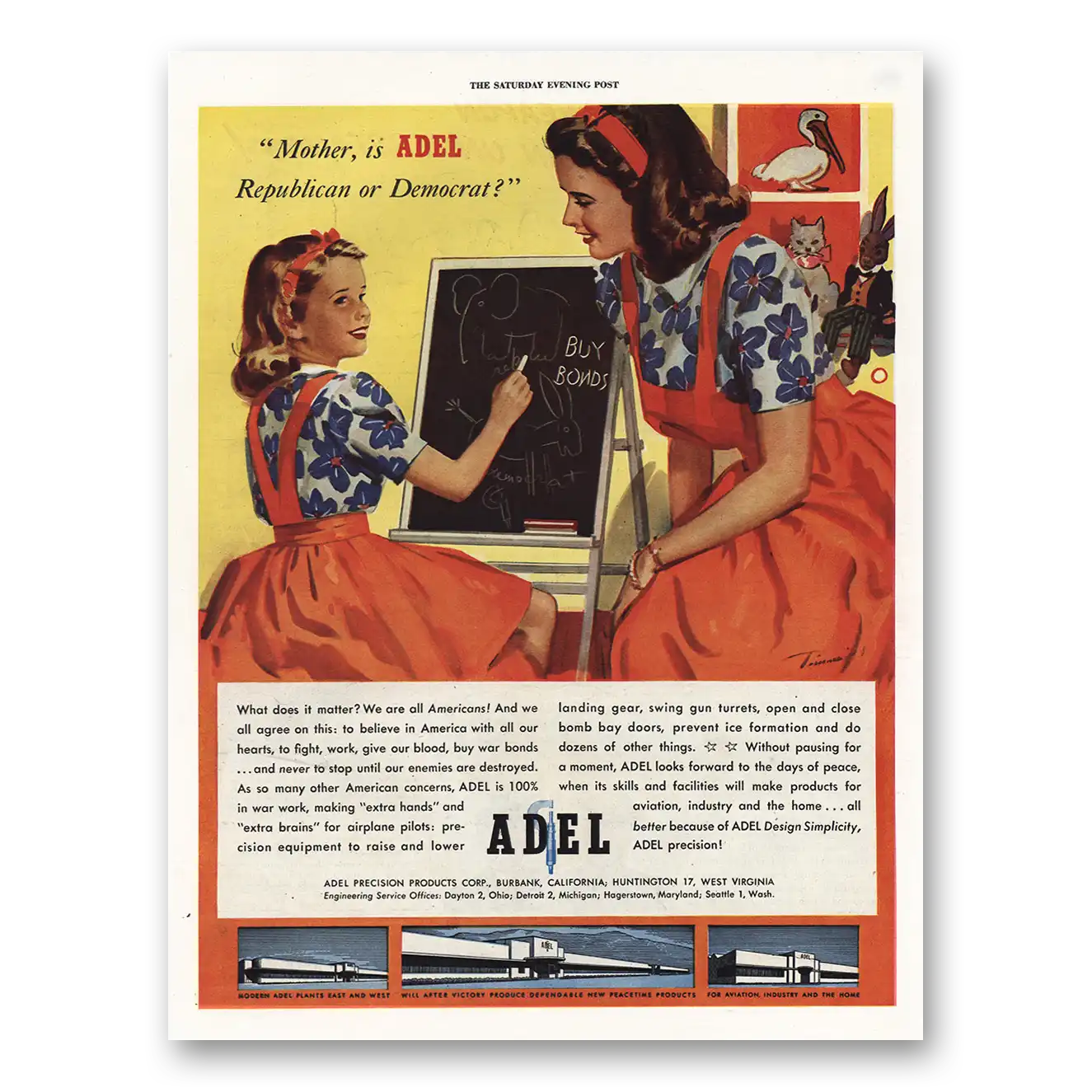 1944 Adel Precision Products Print Ad | Republican Democrat