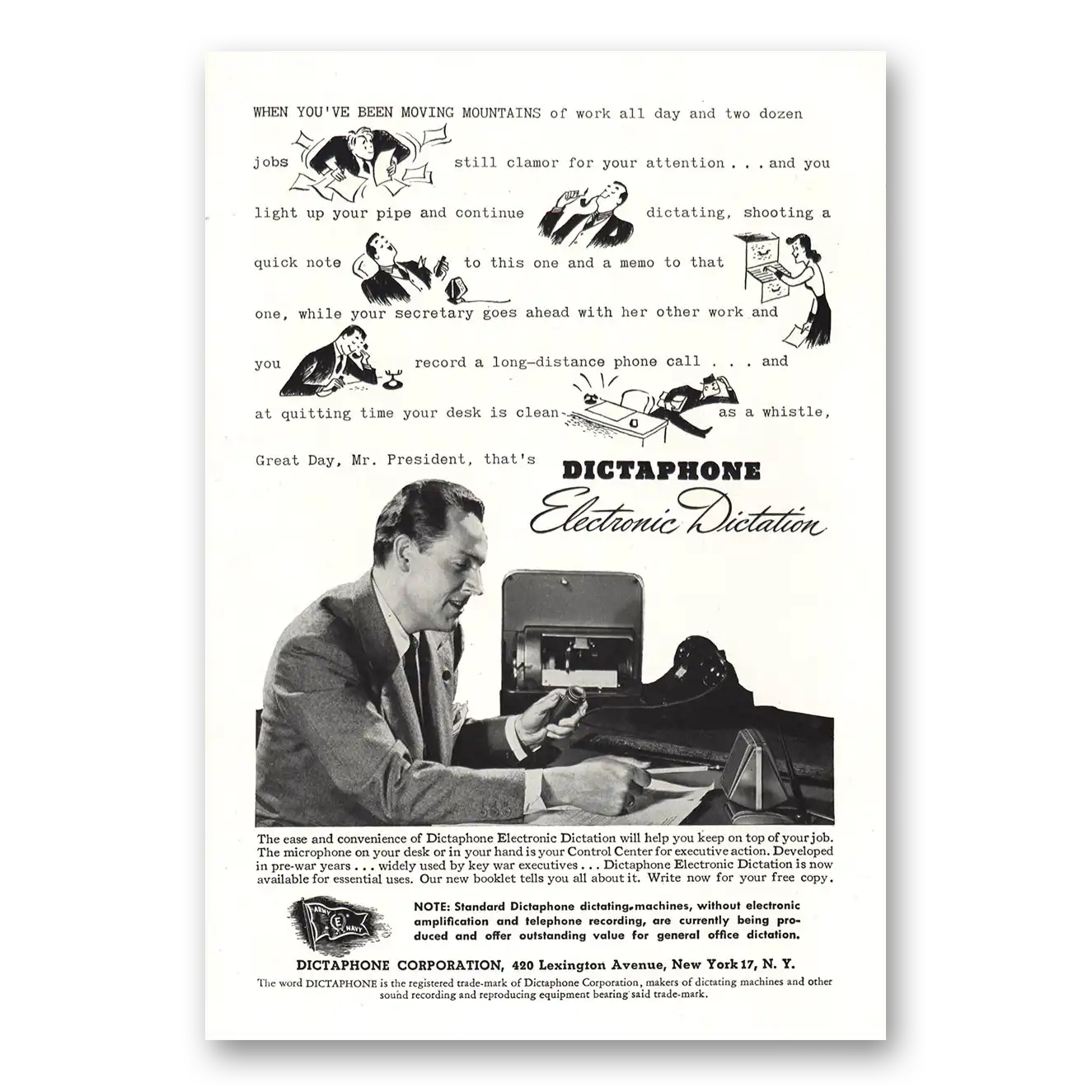 1944 Dictaphone Print Ad | Electronic Dictation